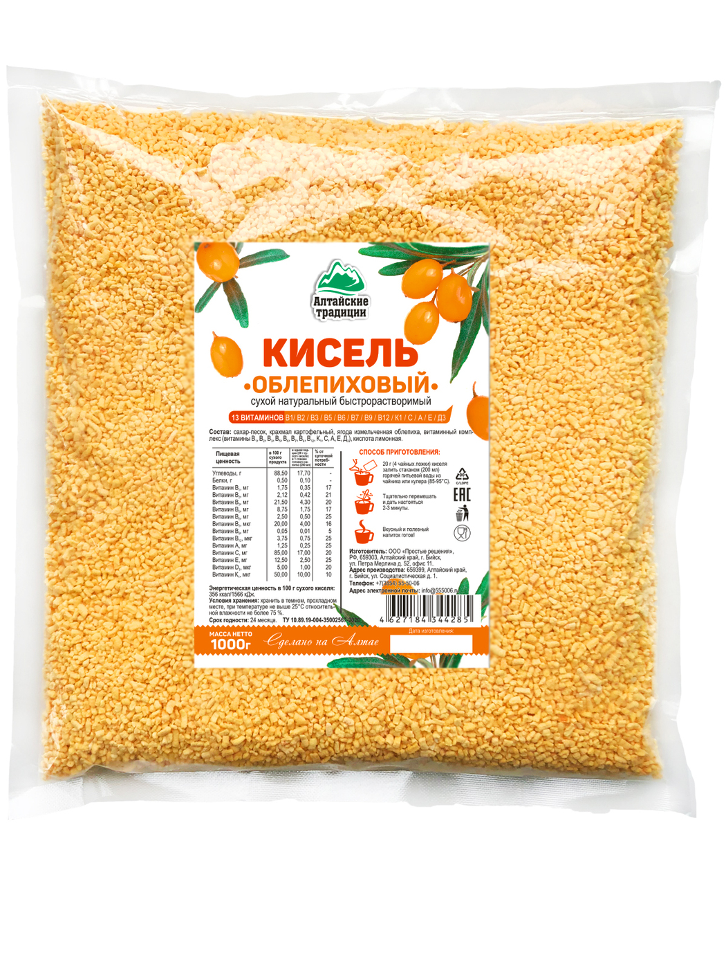 Натуральный витаминизированный кисель Облепиховый, Алтайские традиции, 1 кг