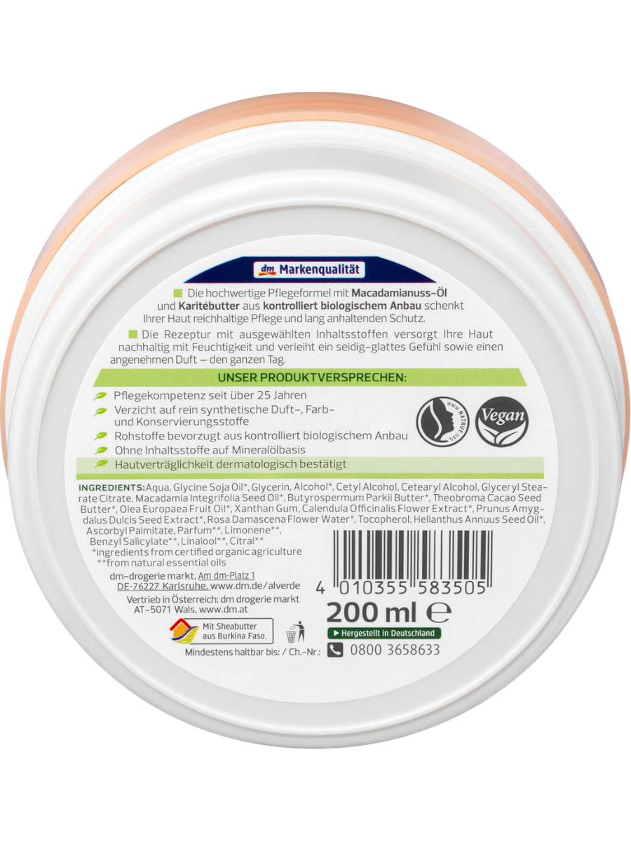 alverde NATURKOSMETIK Масло для тела с маслом ши и орехом макадамии, 200мл