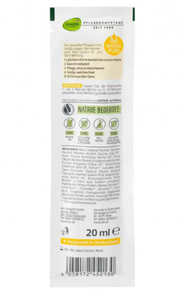 Alverde Маска для для сухих, поврежденных волос, интенсивное увлажнение ,20 мл