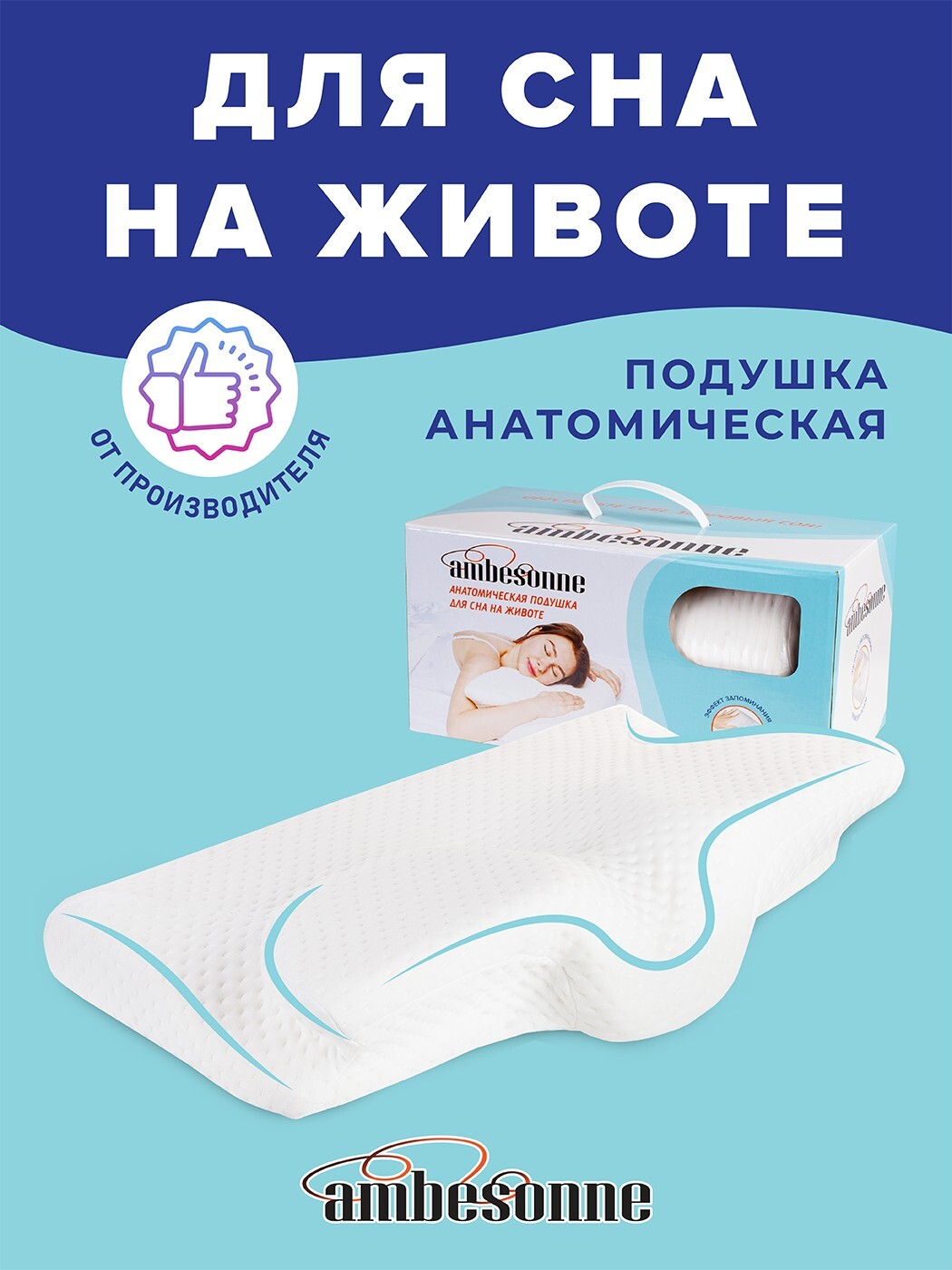 Анатомическая подушка 37x65см, Ambesonne с эффектом памяти Memory Foam, высота 12 см