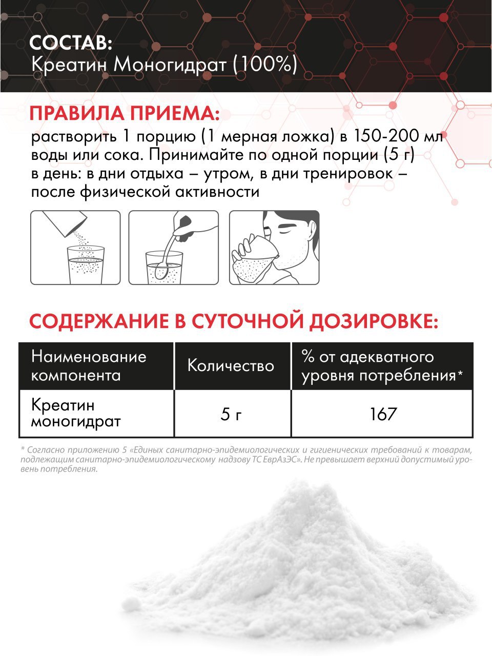 Креатин Моногидрат 250 гр. Creatine Monohydrate, порошок / без вкуса