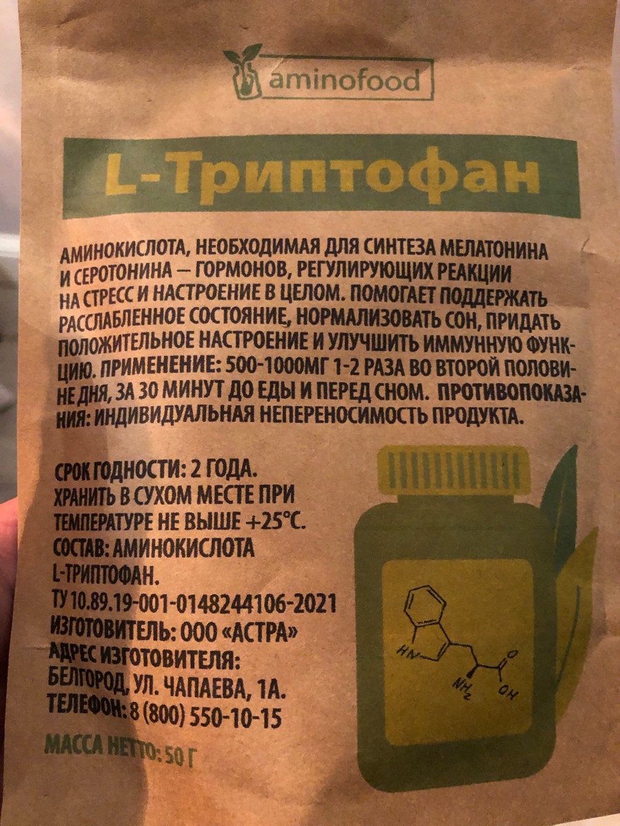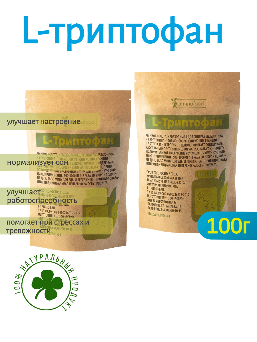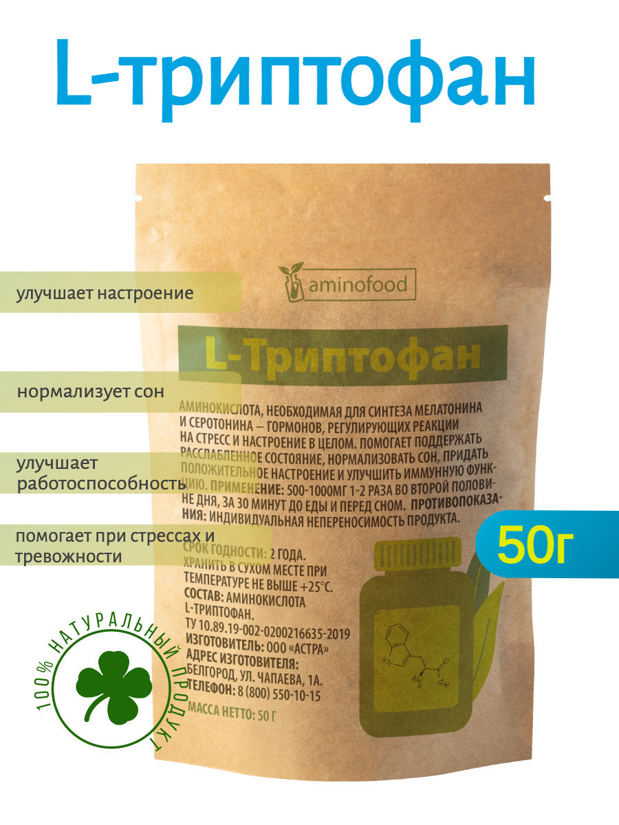 Триптофан порошок аминокислота, 50г Aminofood