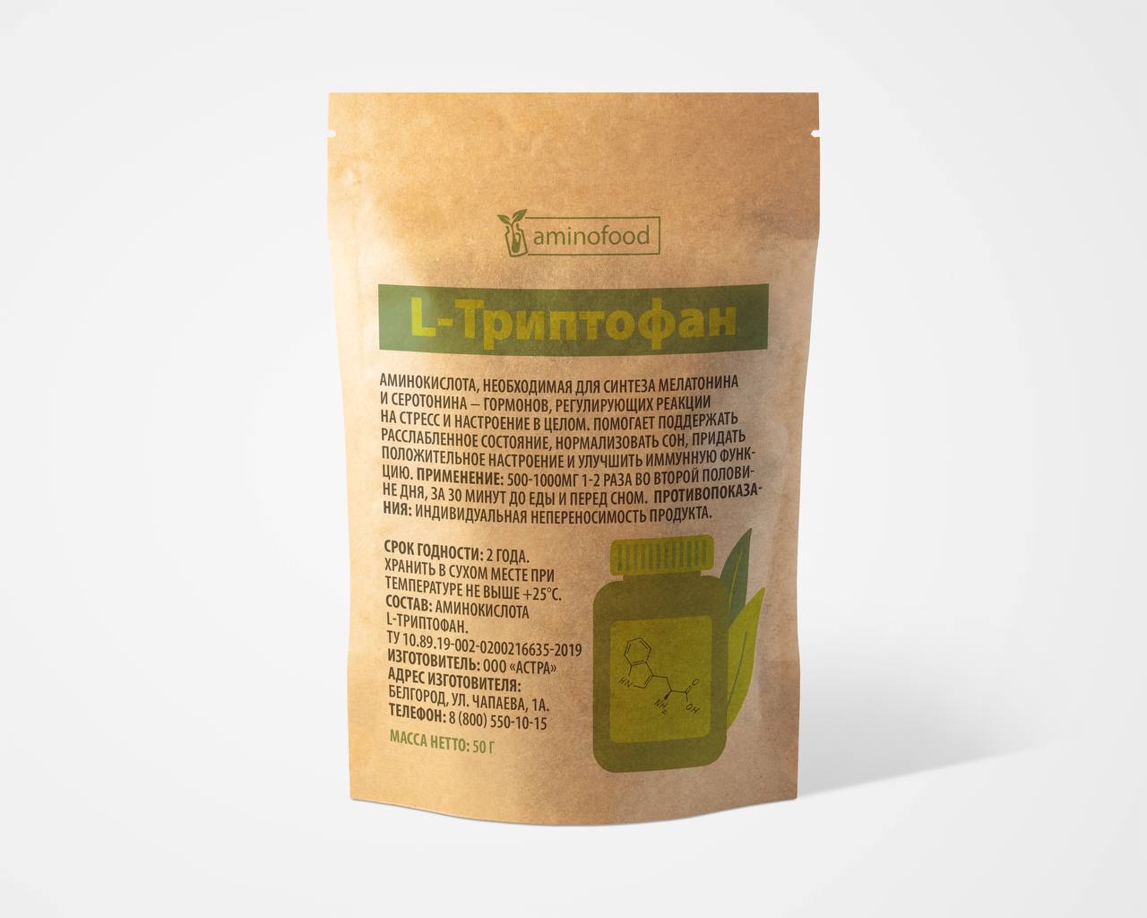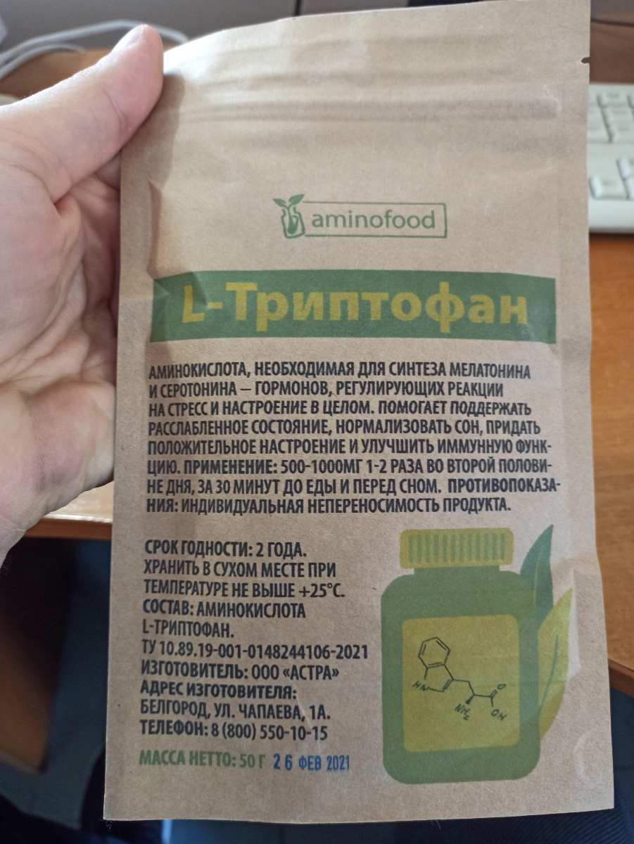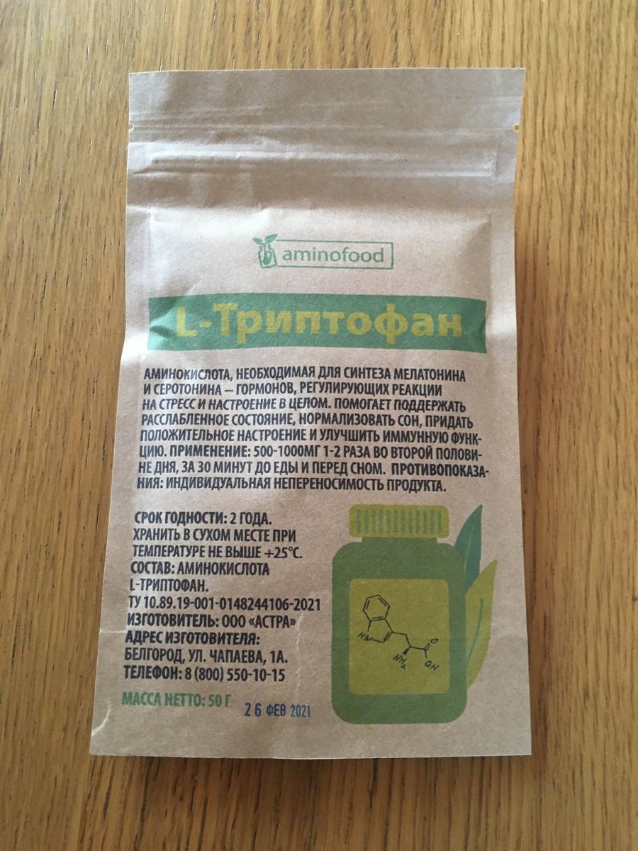Триптофан порошок аминокислота, 50г Aminofood