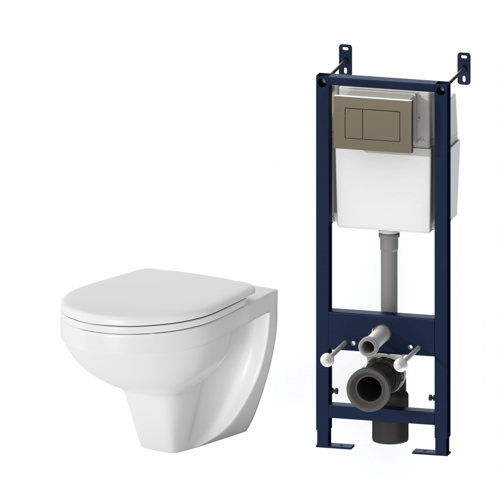 Унитаз подвесной с инсталляцией AM.PM Sense IS374A1738 с глянцевой клавишей и сиденьем