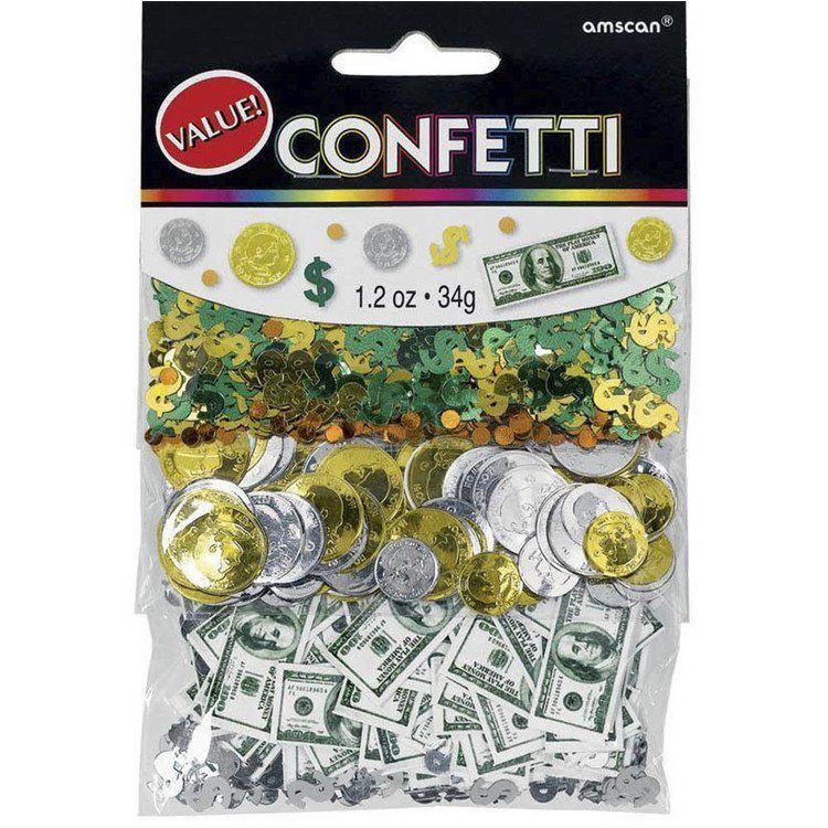 Конфетти Деньги Полимер, Бумага, серебристый, зеленый Amscan