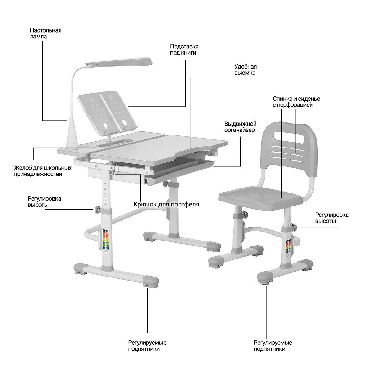 Комплект парта + стул, Парта Трансформер Anatomica Amata с лампой, 80х60х72 см