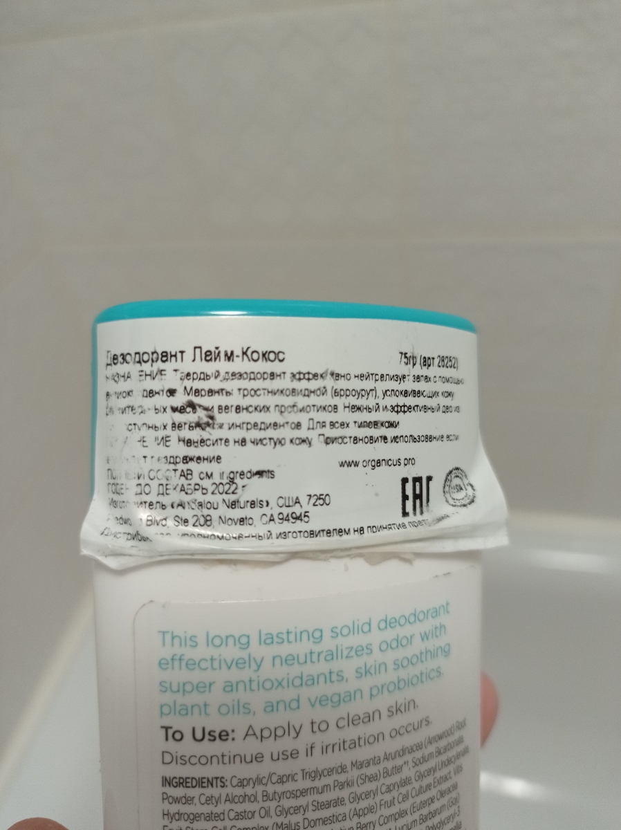 Andalou Naturals / Твердый дезодорант для тела с ароматом розы и граната, 75 гр