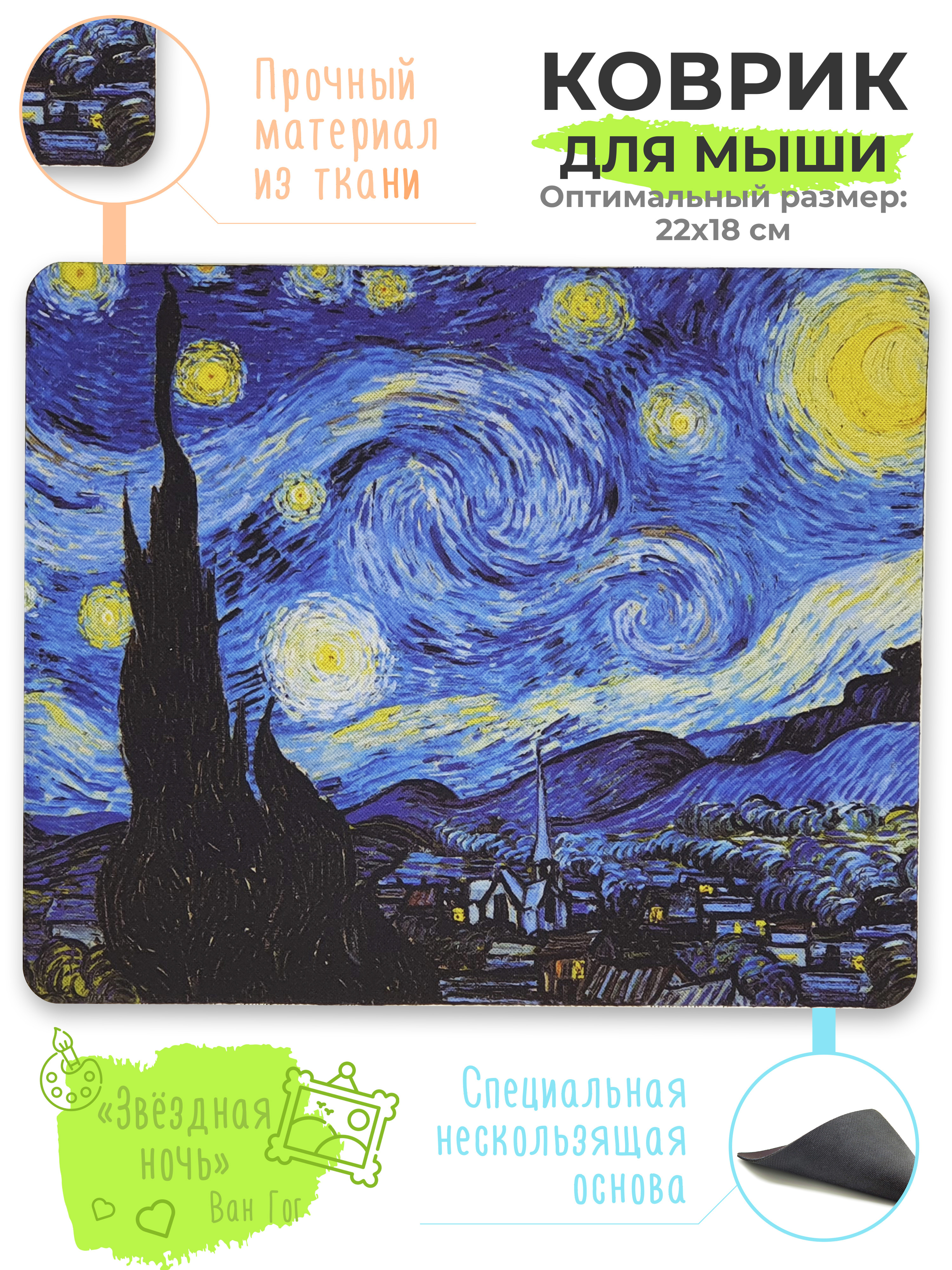 Коврик для мыши, Игровой коврик для мыши ANDIKO Искусство Ван Гог, бирюзовый
