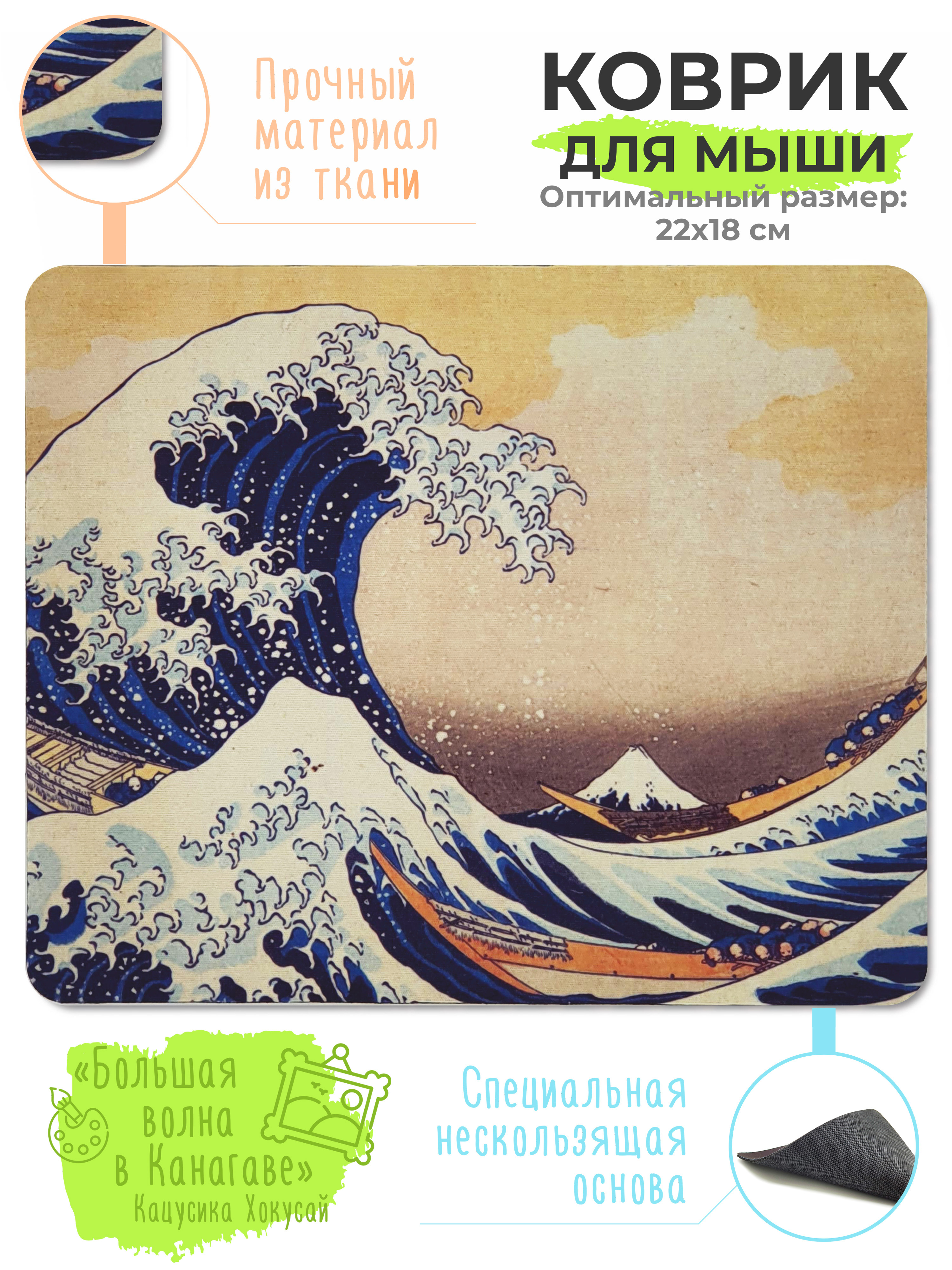 Игровой коврик для мыши, Коврик для мыши ANDIKO Большая волна в Канагаве, бежевый