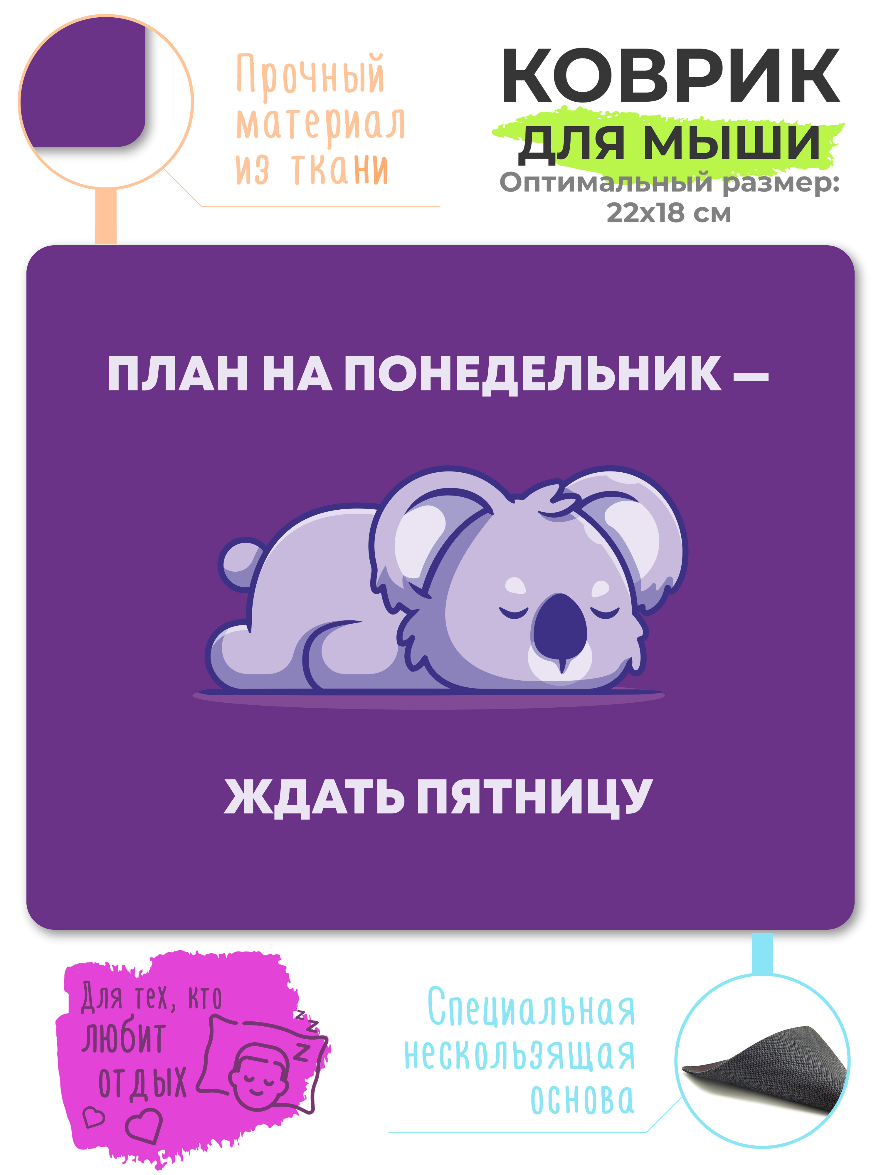 Коврик для мыши, Игровой коврик для мыши ANDIKO План на понедельник, фиолетовый