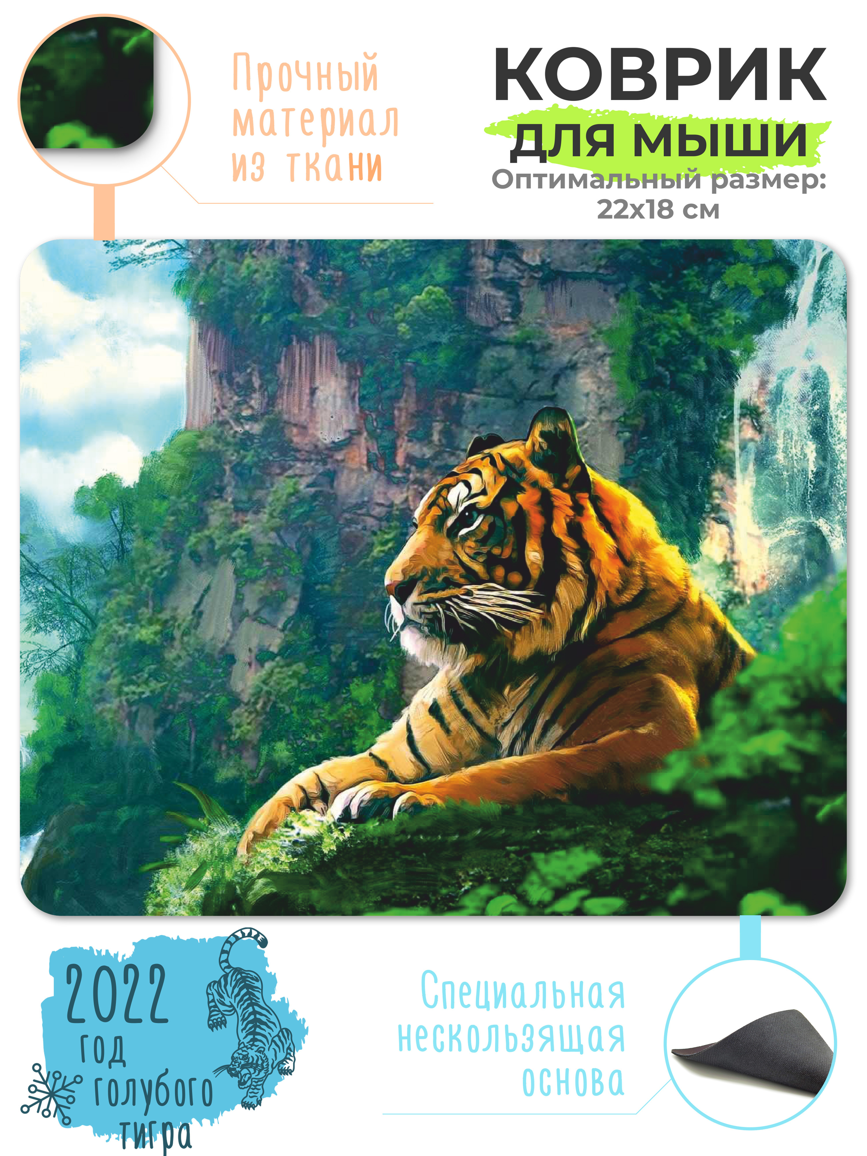 Игровой коврик для мыши, Коврик для мыши ANDIKO Коврик для мыши Тигр в джунглях, разноцветный