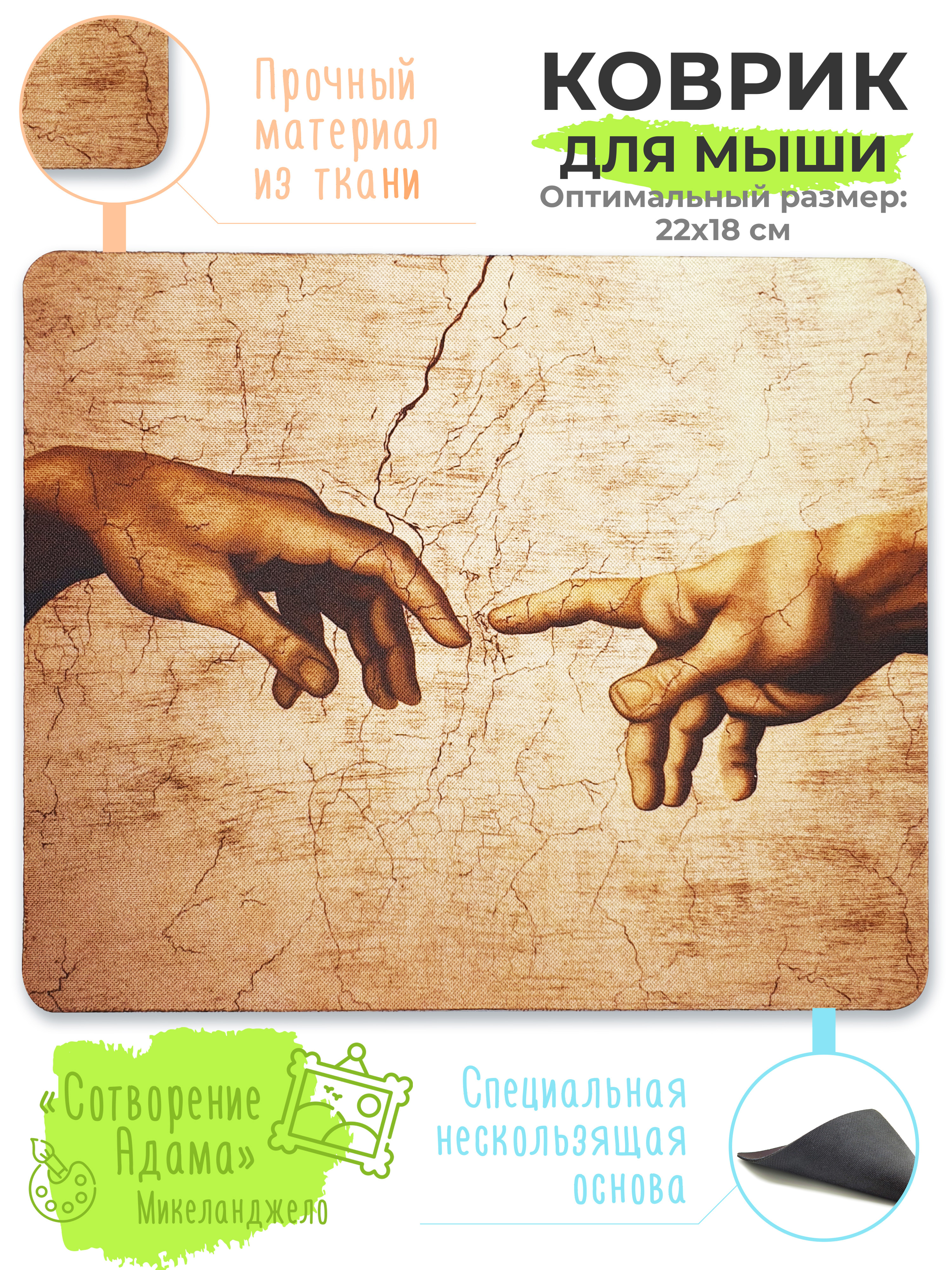 Коврик для мыши, Игровой коврик для мыши ANDIKO Сотворение Адама, разноцветный