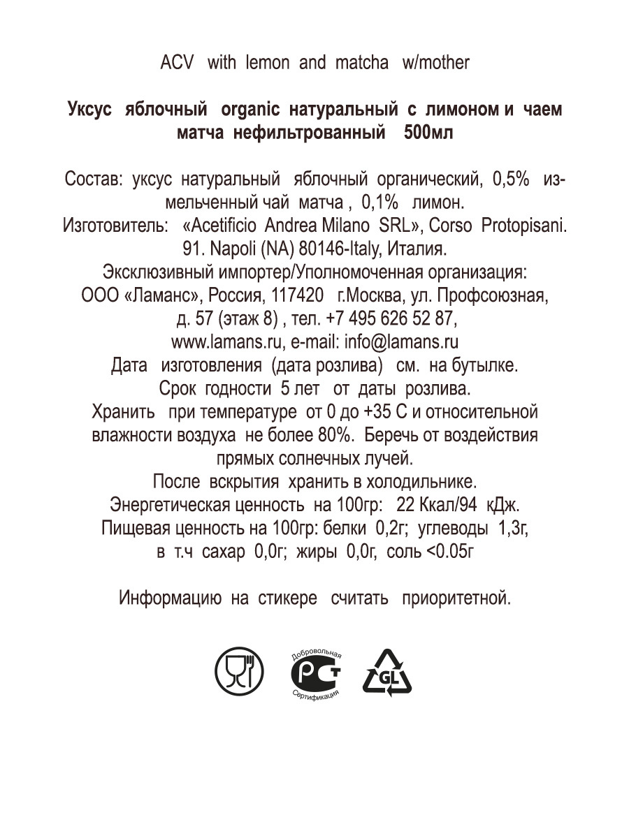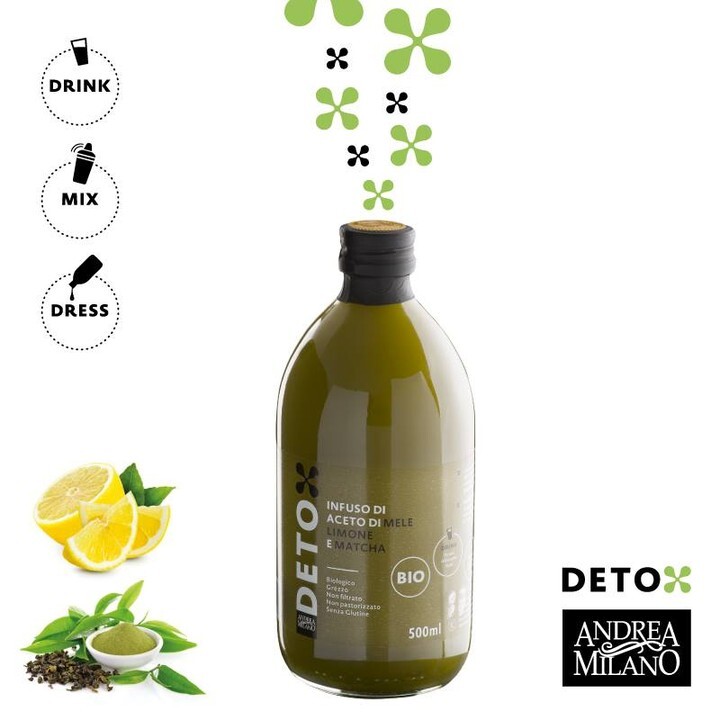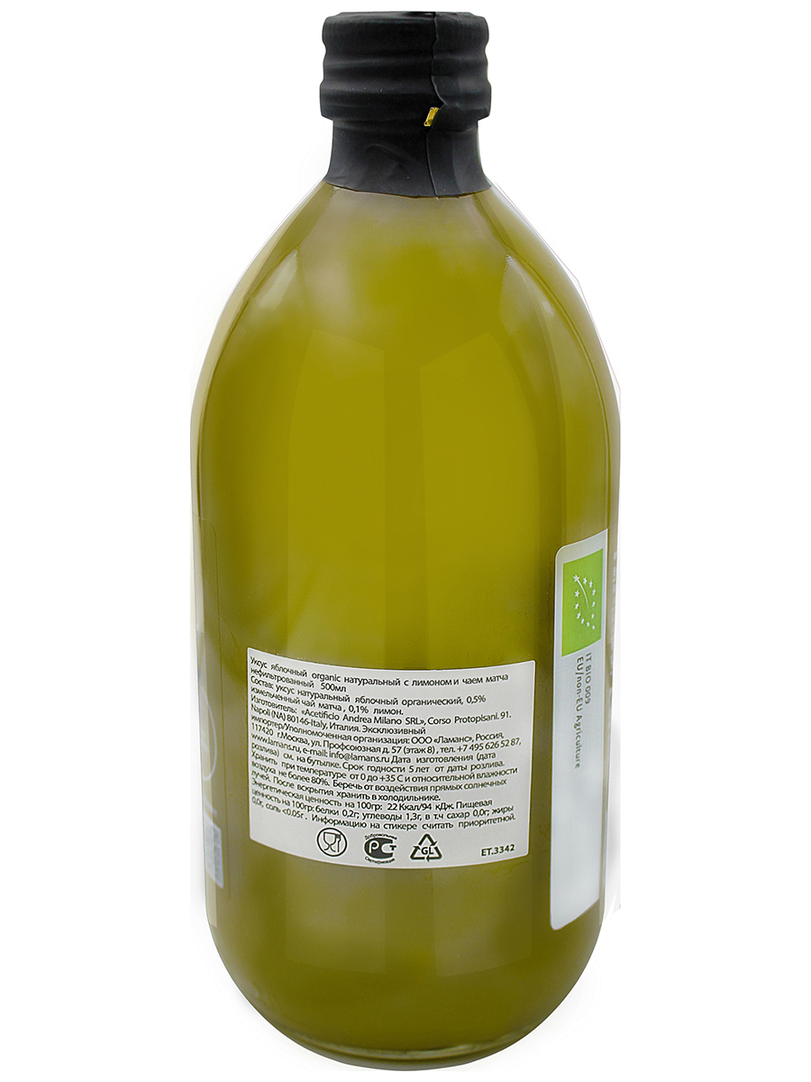 Уксус яблочный organic натуральный нефильтрованный, 5 % "DETO ANDREA MILANO" 500 мл, ст/б (Италия)