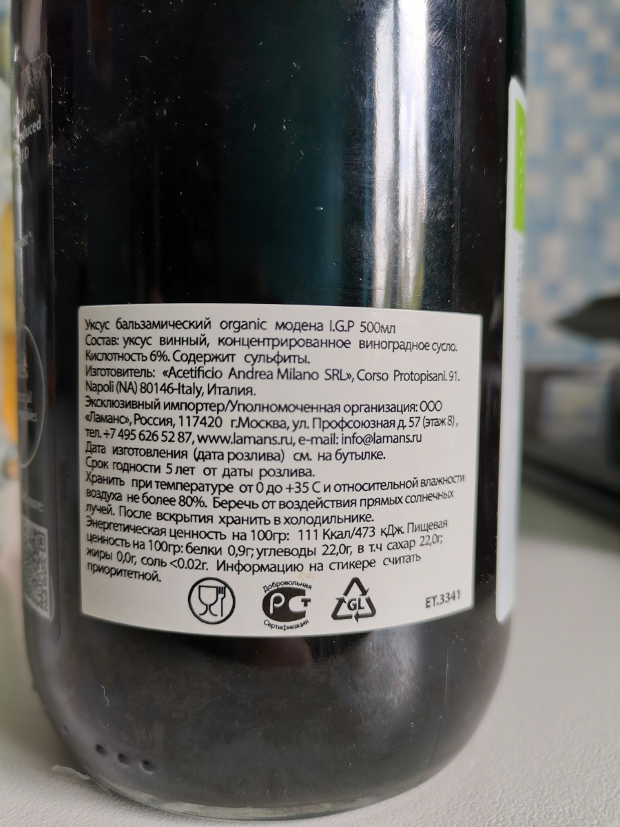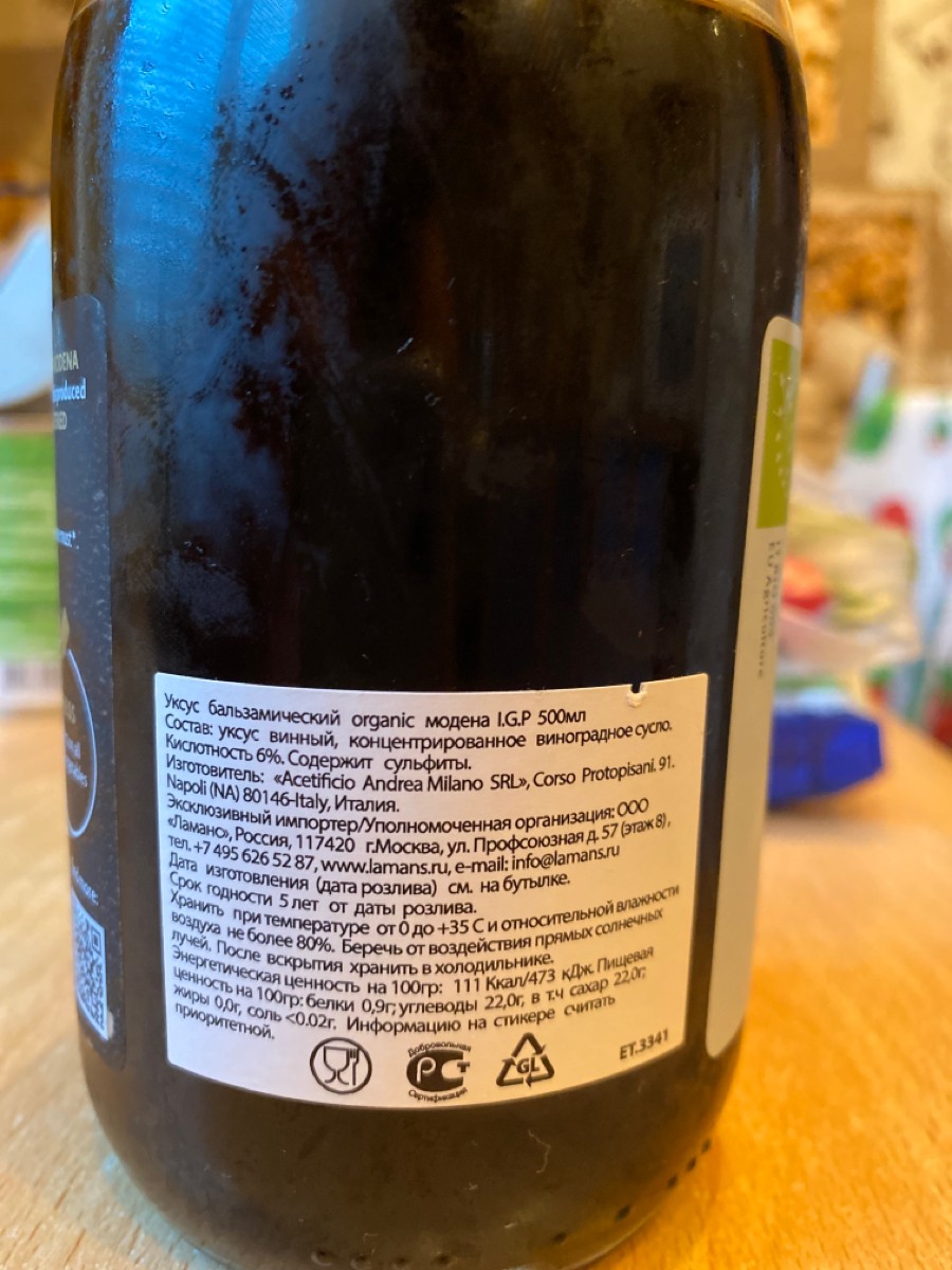 Уксус бальзамический ORGANIC I.G.P Modena DETO ANDREA MILANO 500 мл, ст/б (Италия)
