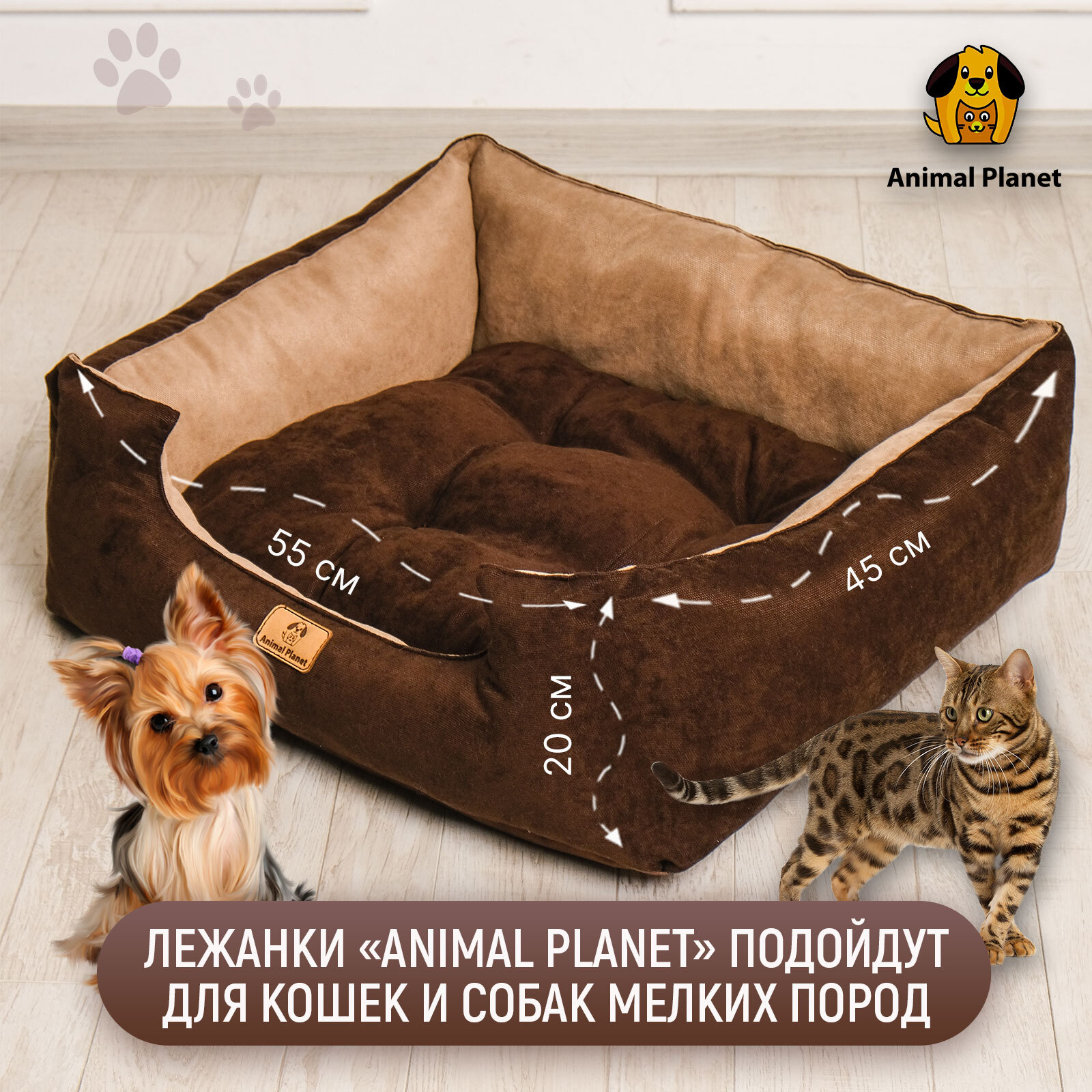 Лежанка для животных 55x45x20 для кошек и собак маленьких и средних пород