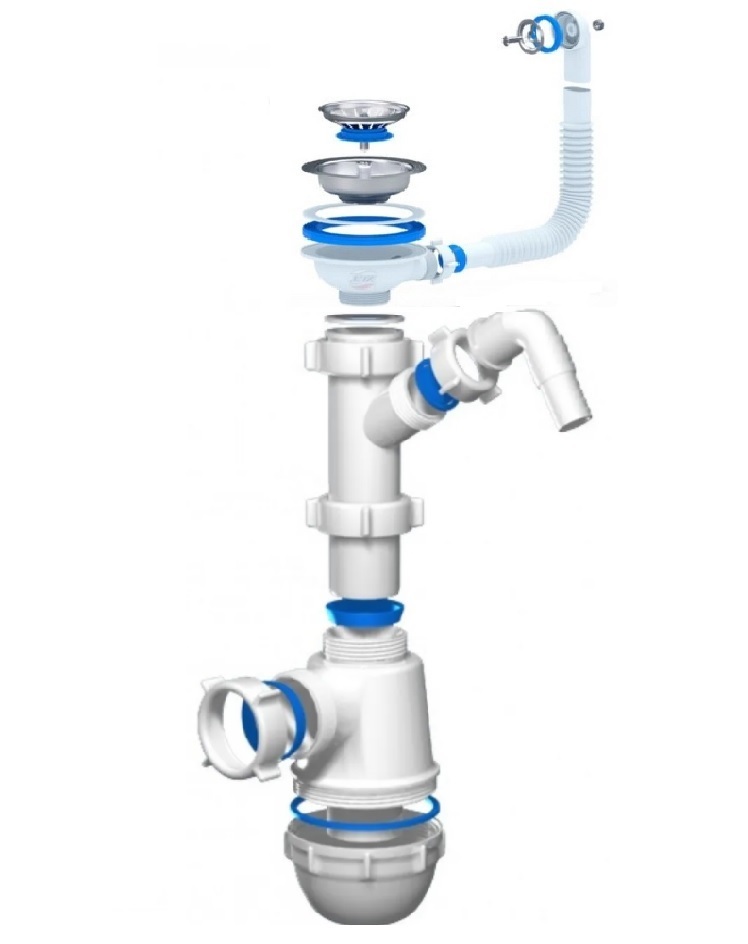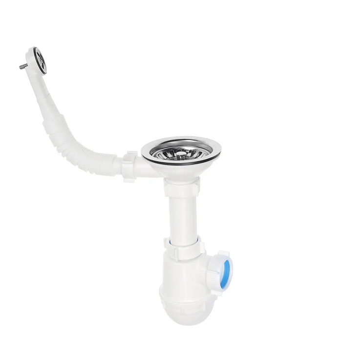 Сифон для кухонной мойки Ани 3 1/2"*40 прямоточный с круглым пер.мойки, с гиб. гофротрубой 40*40/50