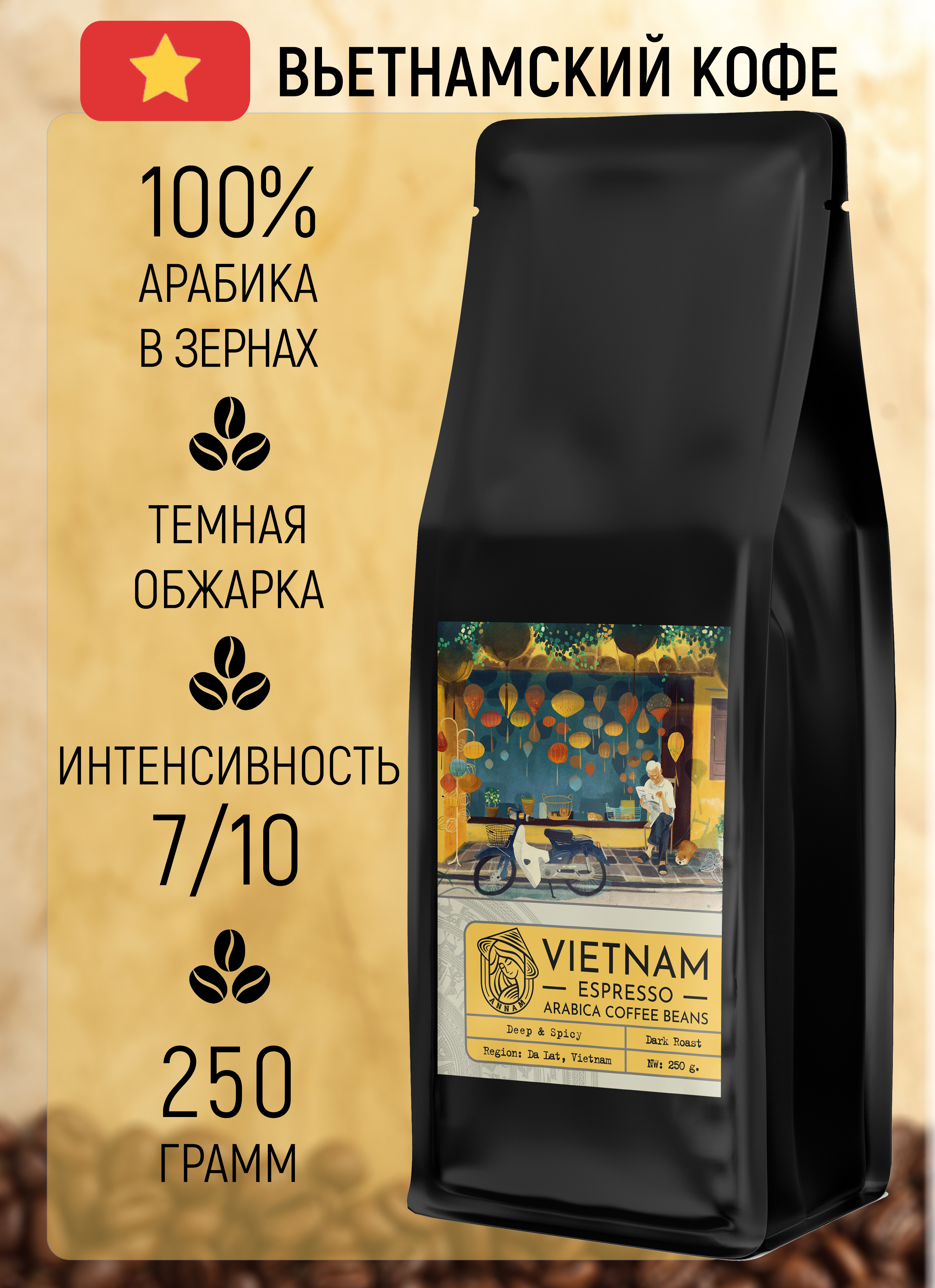 Вьетнамский кофе в зернах 100% Арабика ANNAM Espresso, темная обжарка, 250г