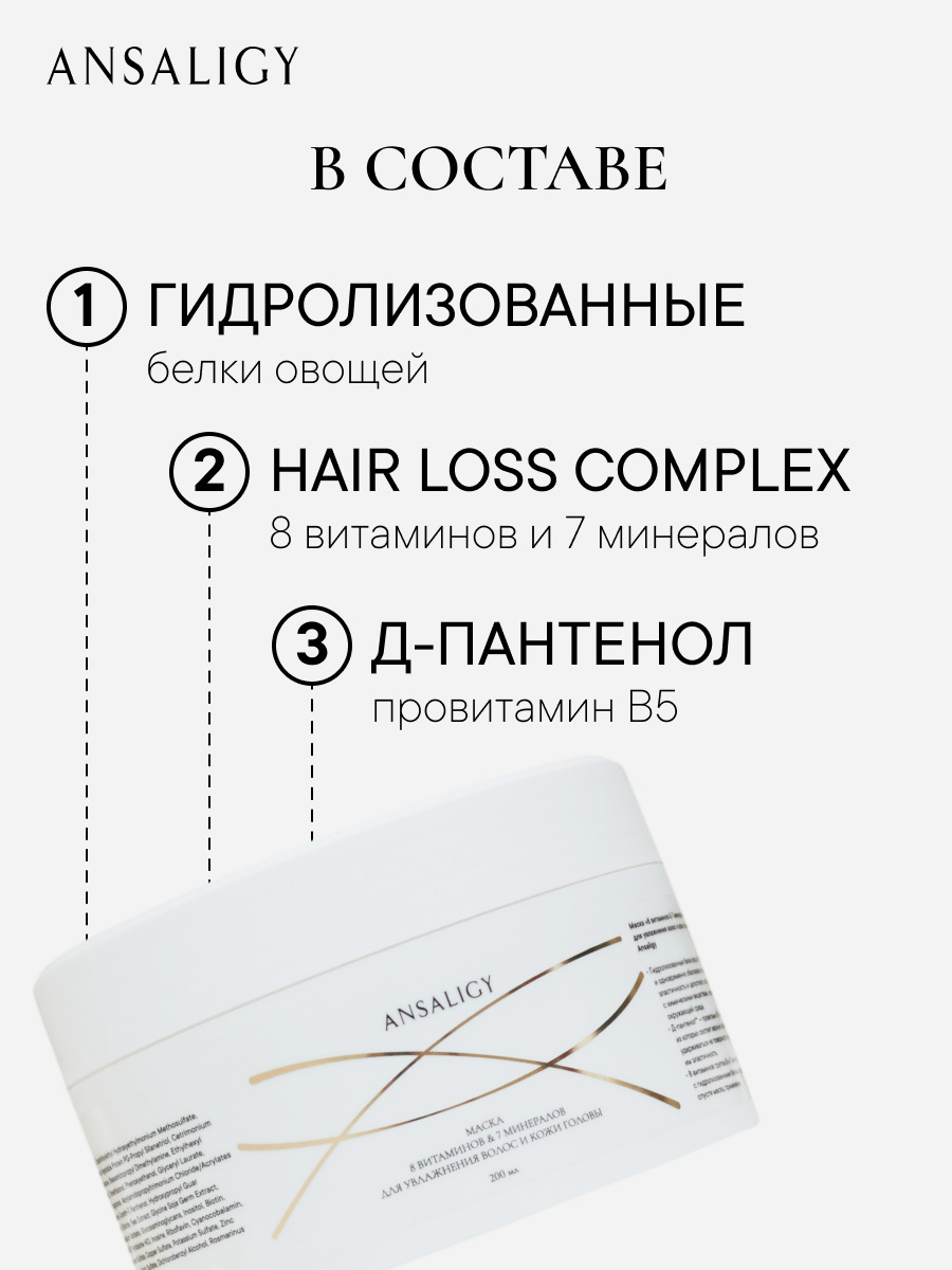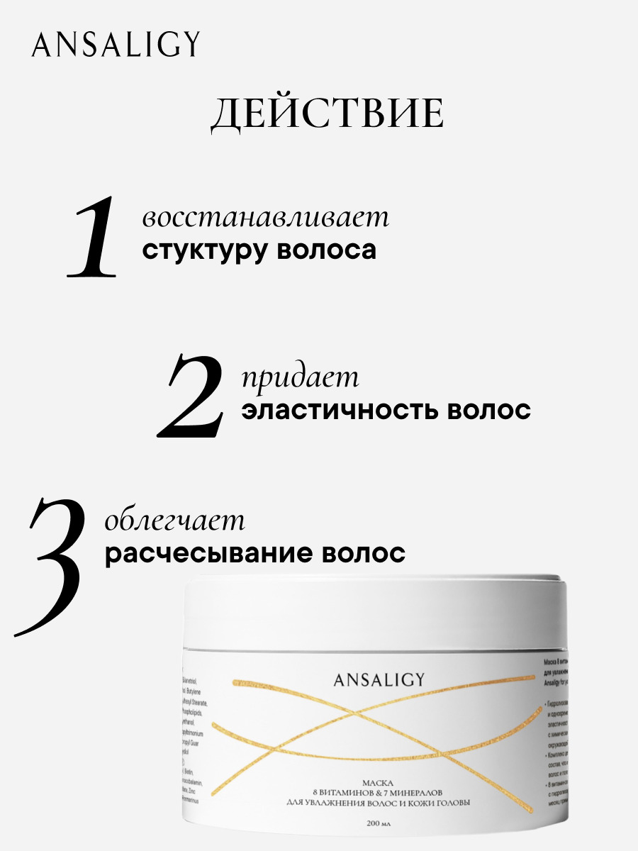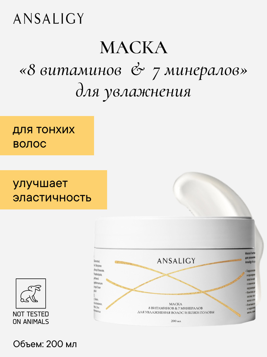 ANSALIGY Маска 8 витаминов и 7 минералов для увлажнения, 200мл