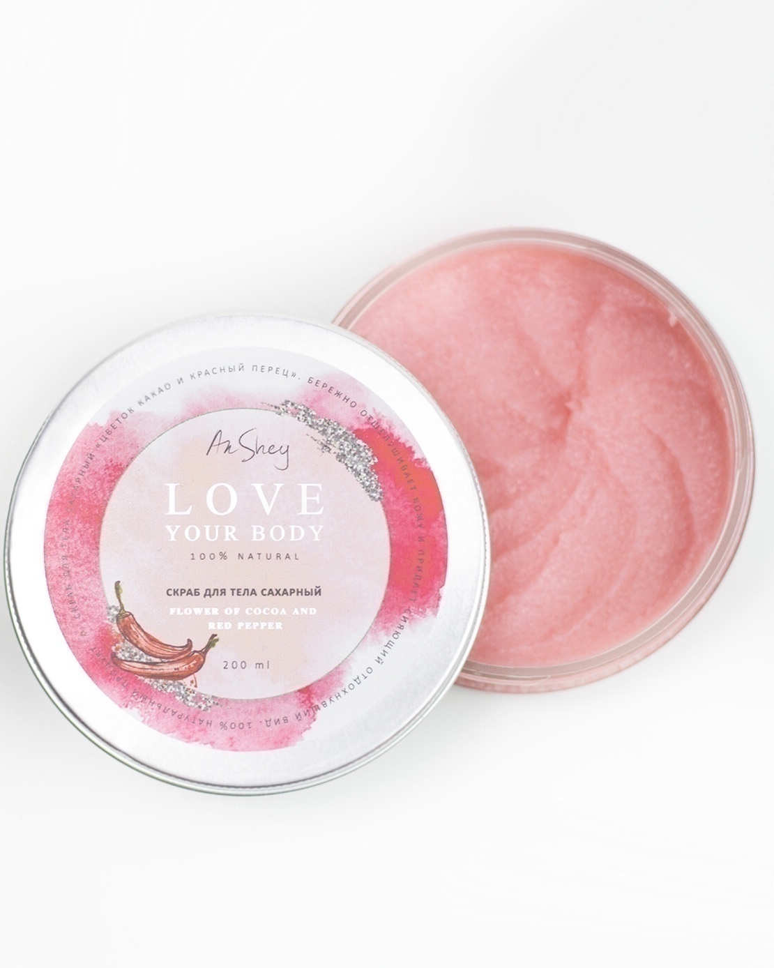 AnShey Скраб для тела антицеллюлитный "Сахарный цветок какао и красный перец"