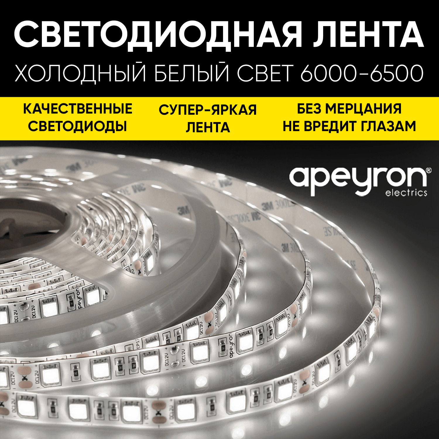 Светодиодная лента APEYRON electrics 5м, 12В, IP20, 120 LED/m 00-143