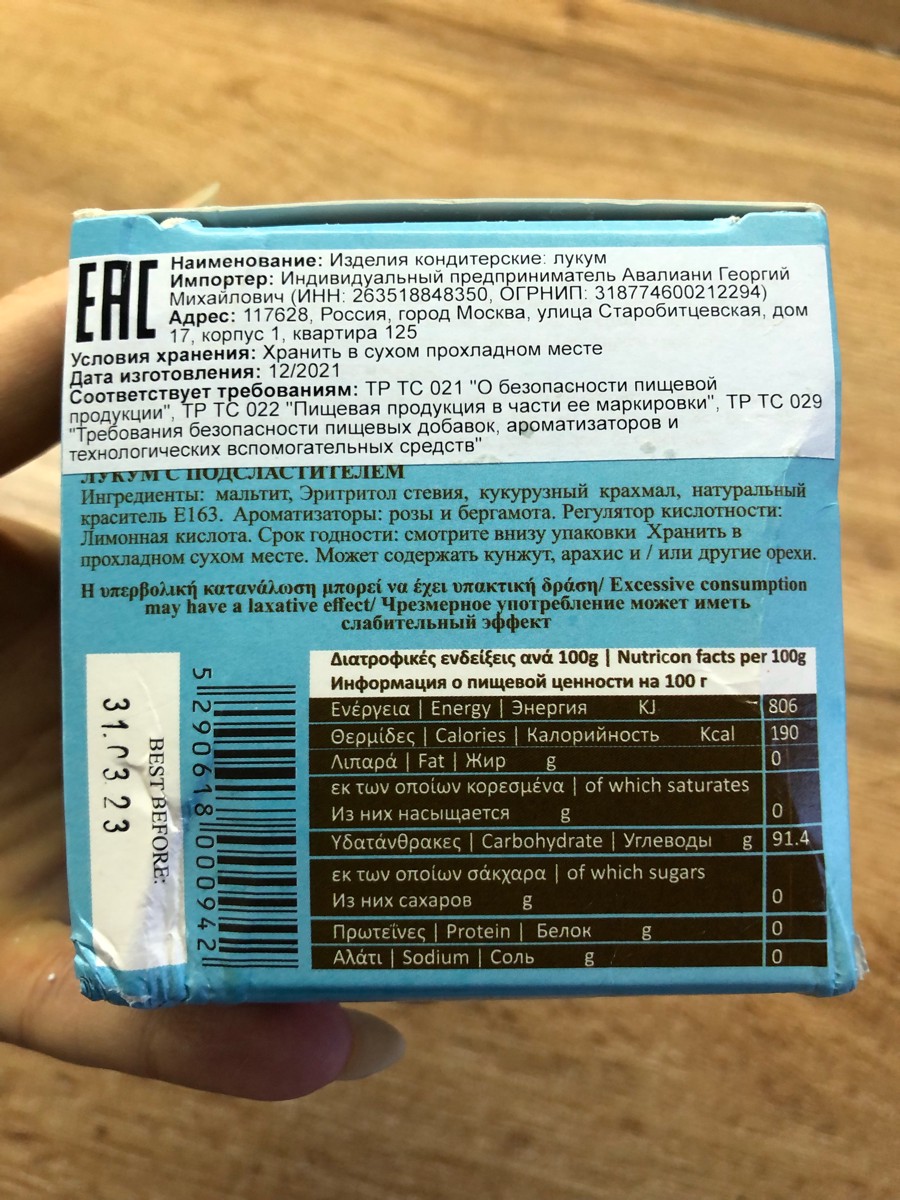 Лукум Aphrodite Delights, Кипр, вкус ваниль