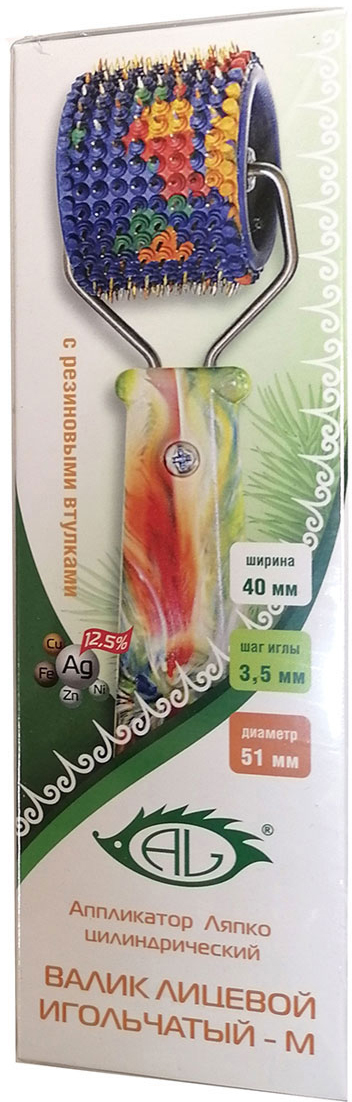 Аппликатор Ляпко "Валик Лицевой", разноцветный, шаг игл 3,5 мм, диаметр 51 мм, ширина 40 мм