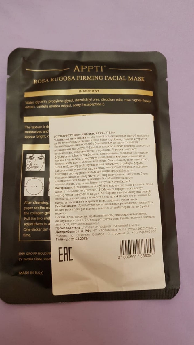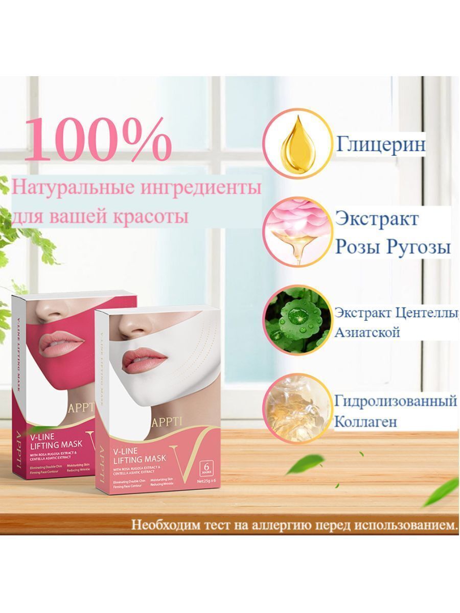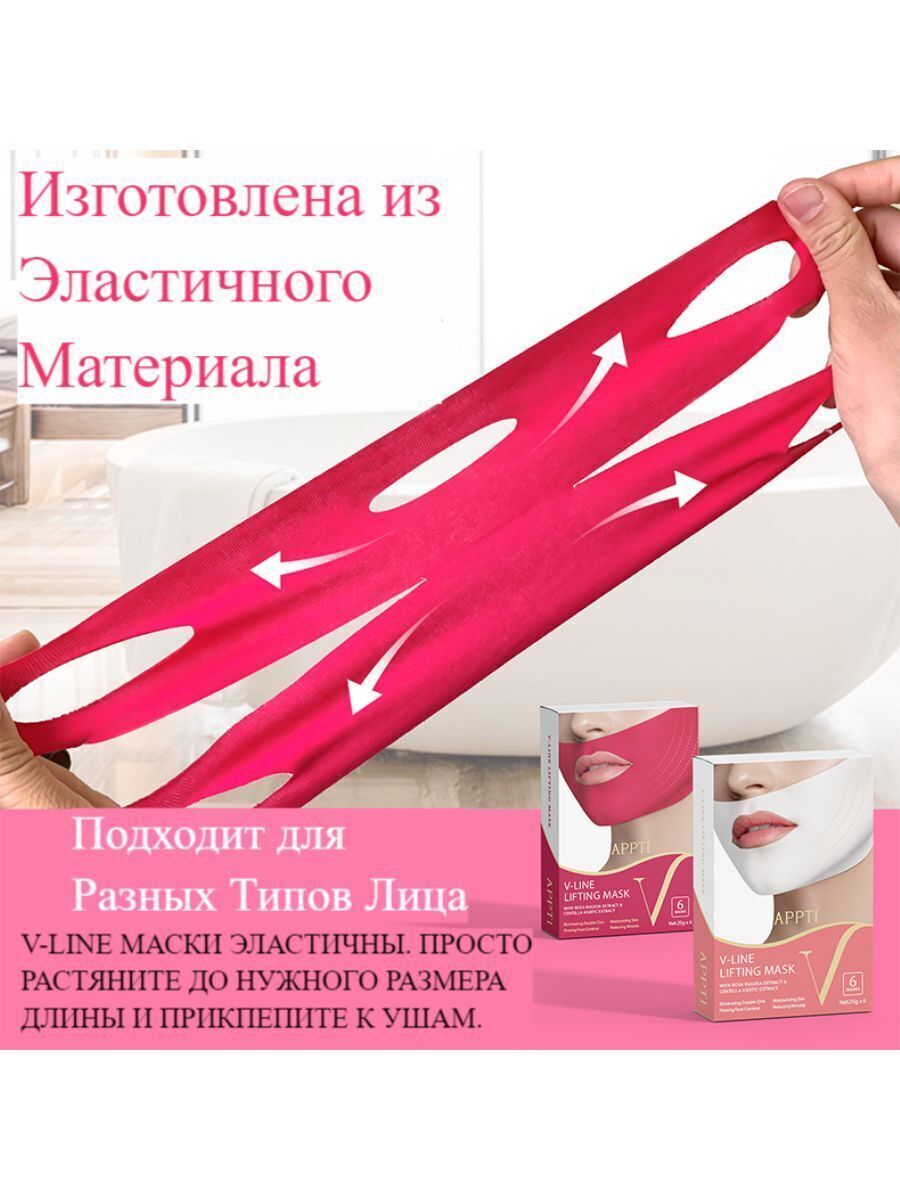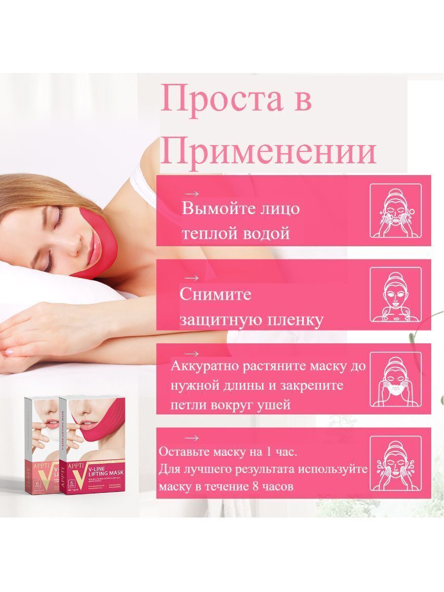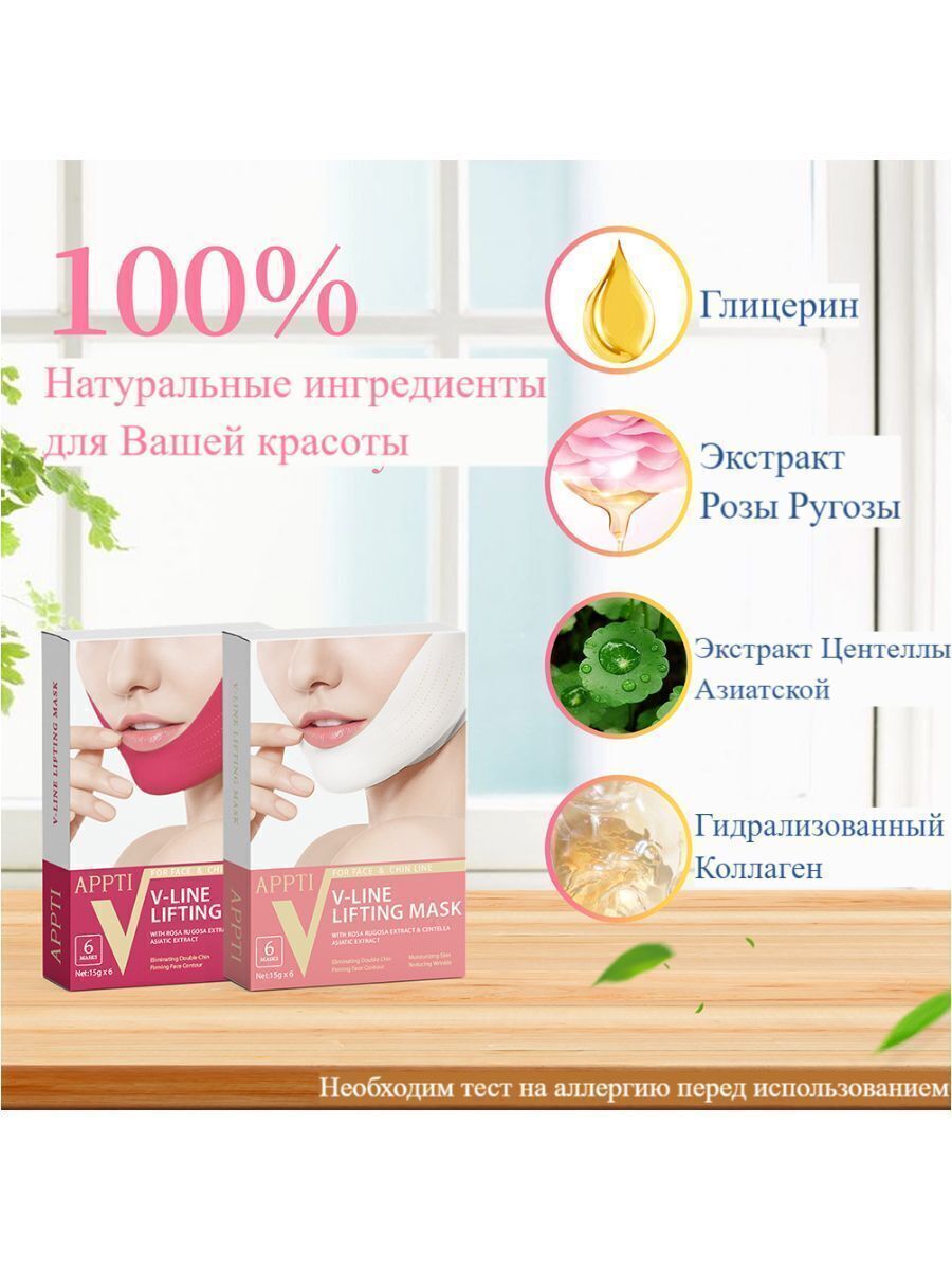 APPTI Патч - маска V-Line для подтяжки и лифтинга овала лица / Красный / 6 шт.
