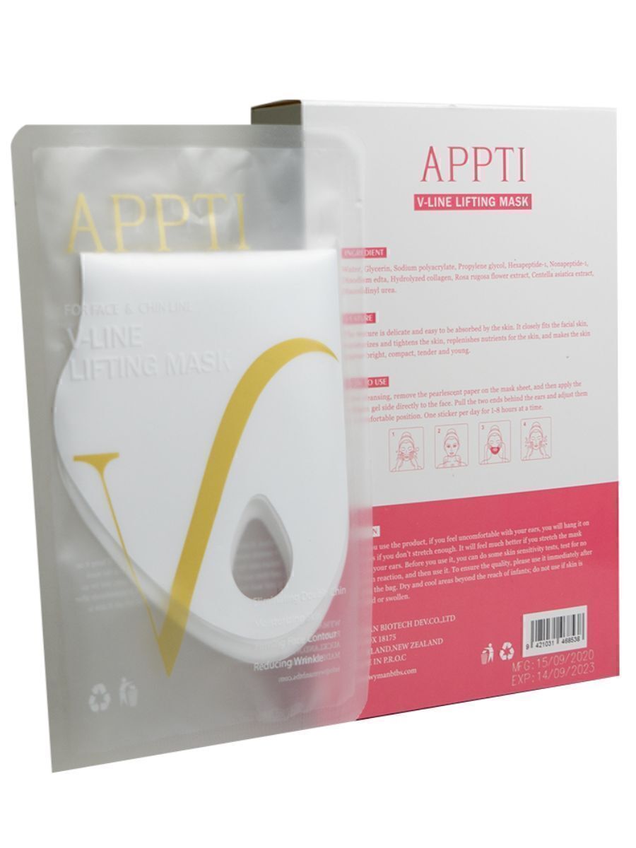 APPTI Патч - маска V-Line для поддержания овала лица / Белая / 6 шт. в упаковке