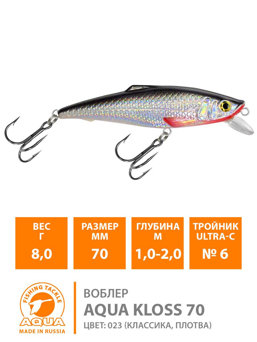 Воблер для рыбалки AQUA ТВИН 55mm, вес - 2,5g, цвет 023 (классика, плотва) (набор 2 шт)