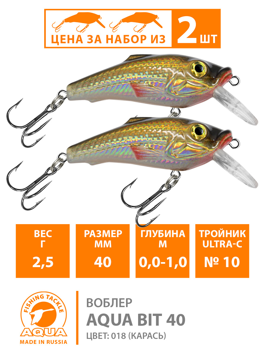 Воблер для рыбалки AQUA BIT 40mm, вес - 3,0g, цвет 018 (карась) (набор 2 шт)