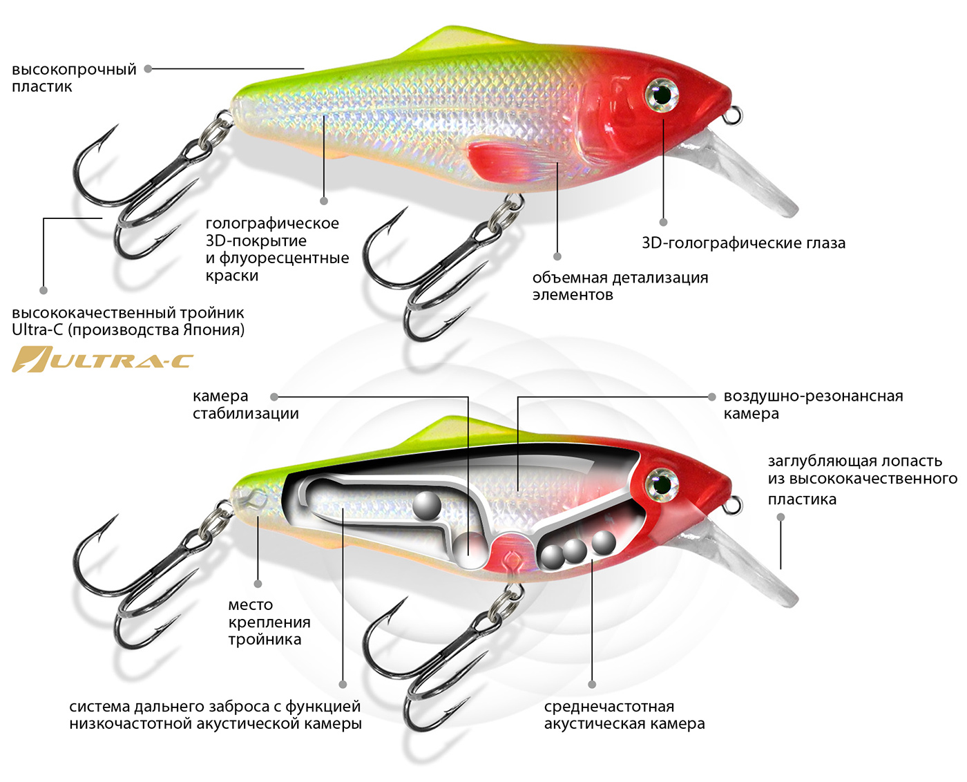 Балансир AQUA ЧУДО-7 74mm, набор 2шт, цвет 104 (зеленая спинка)