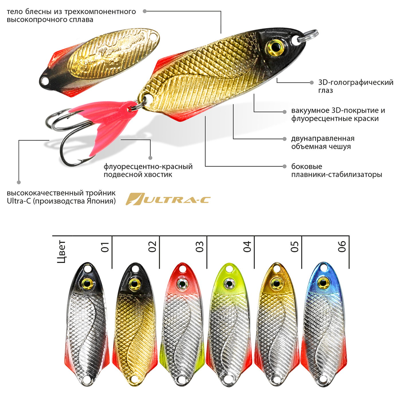 Блесна зимняя AQUA ОНЕГА 6,0g, набор 2шт, цвет 05 (серебро, золото, черный металлик)