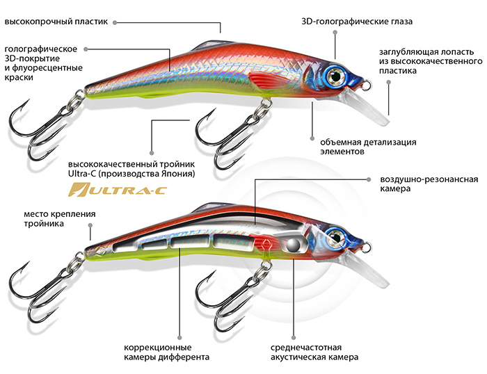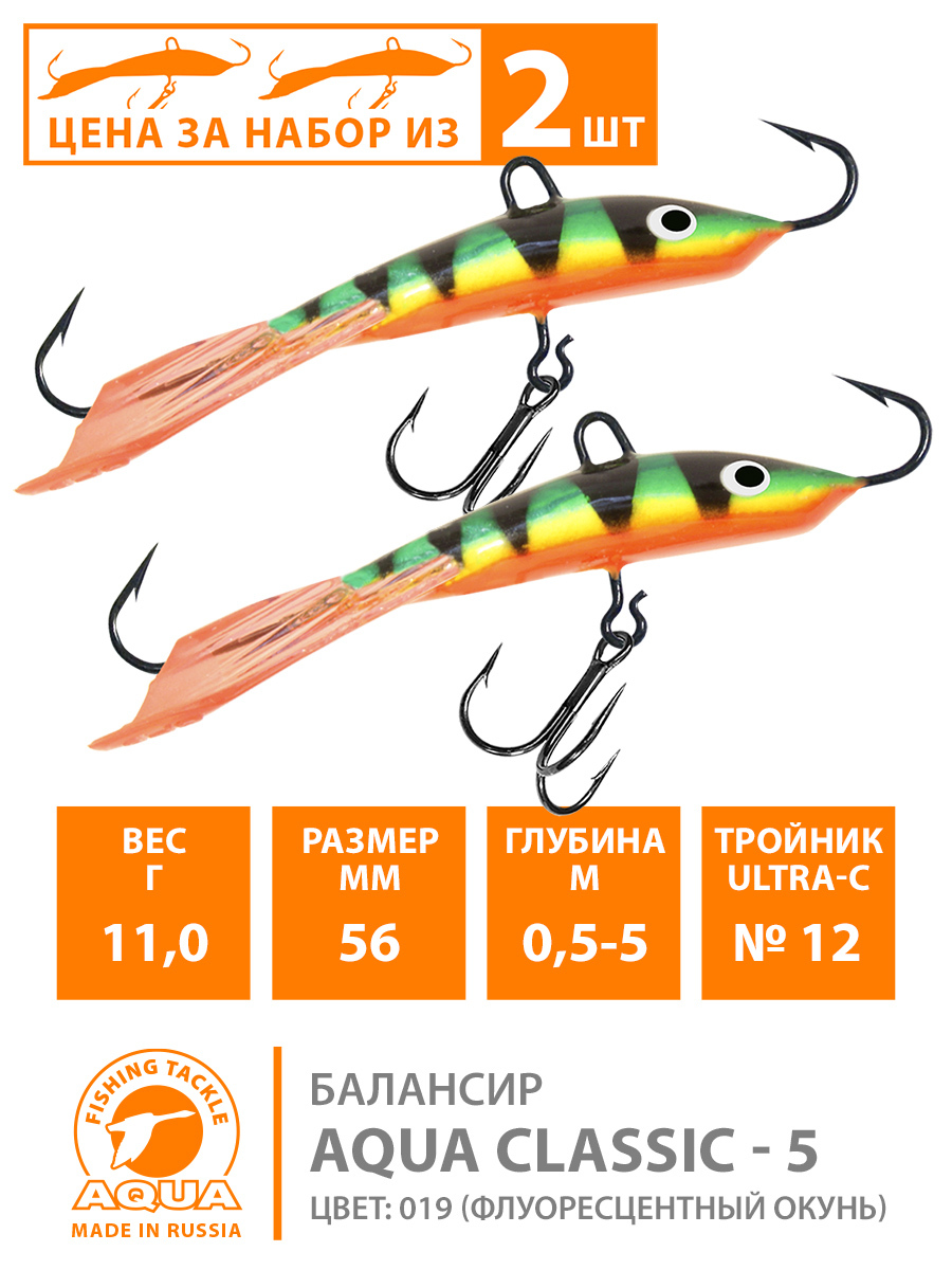 Балансир AQUA CLASSIC-5 56mm, набор 2шт, цвет 019R (флуоресцентный окунь)