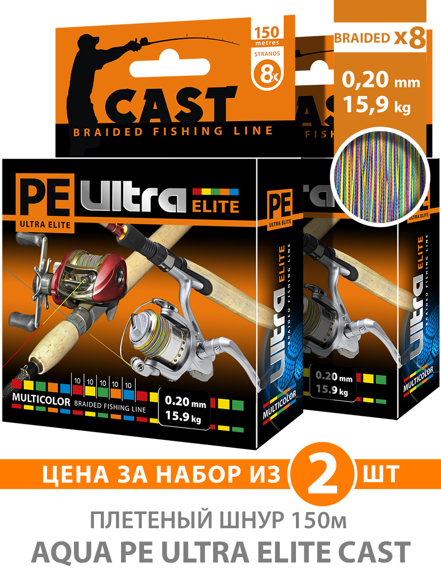 Плетеный шнур PE ULTRA ELITE CAST MULTICOLOR (10) 0,20mm, набор 2шт. по 150m