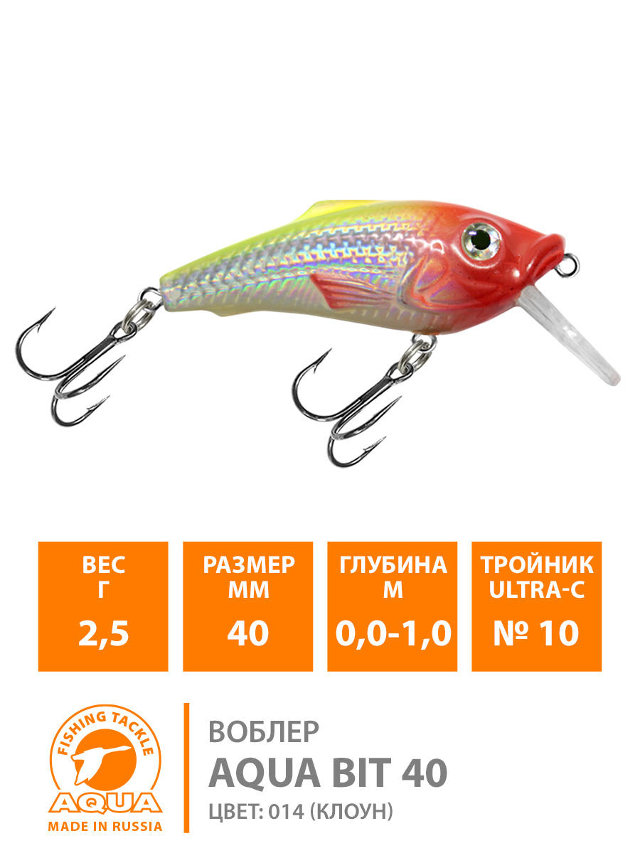 Воблер для рыбалки AQUA BIT 40mm, вес - 3,0g, цвет 014 (клоун)