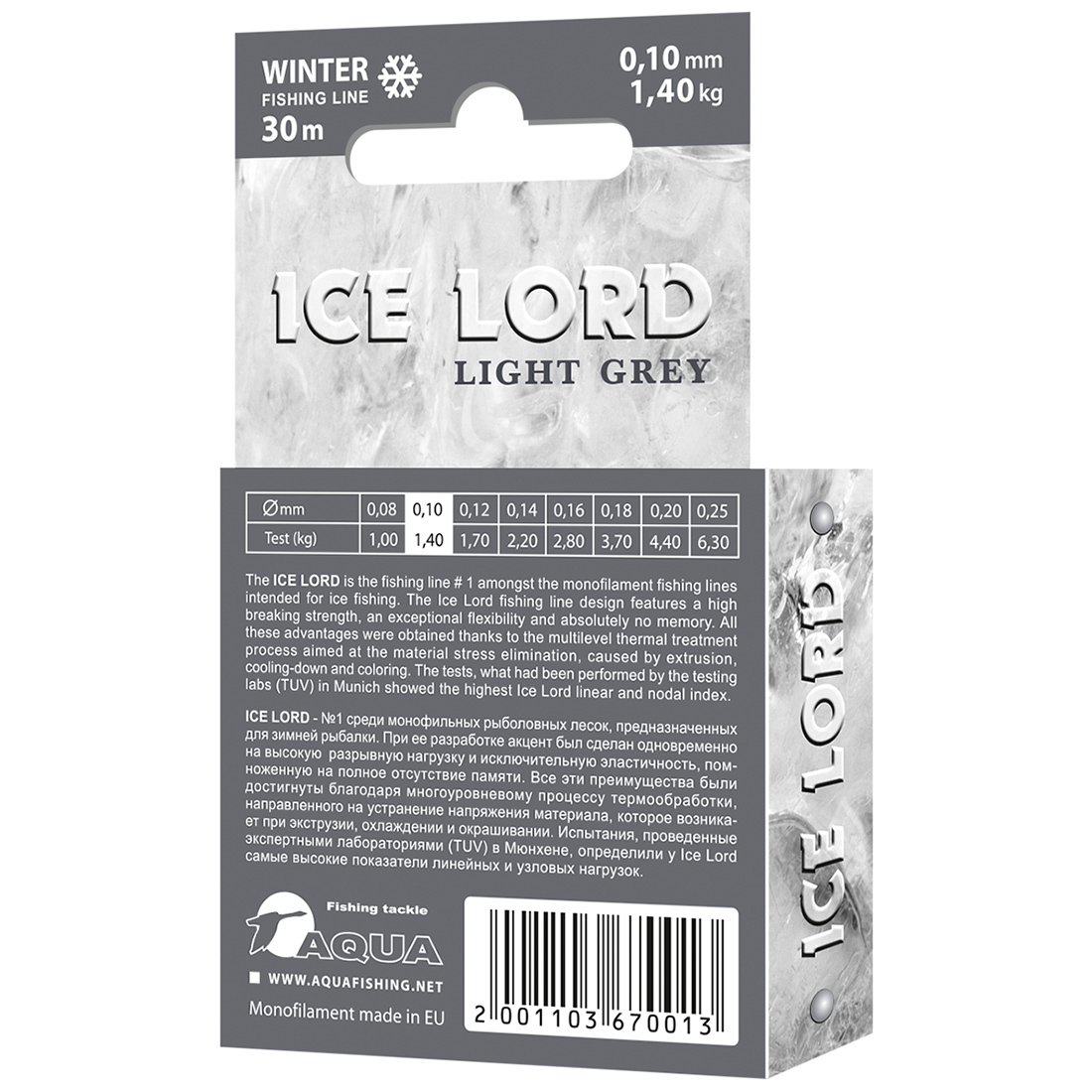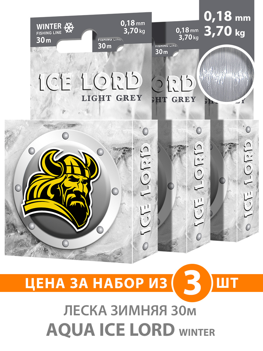 Монофильная леска для рыбалки Aqua Ice Lord Light Grey, 3 шт. по 30 м; 0.18 мм