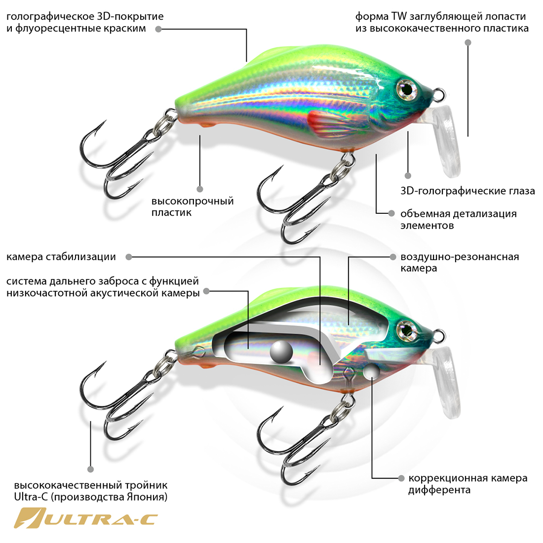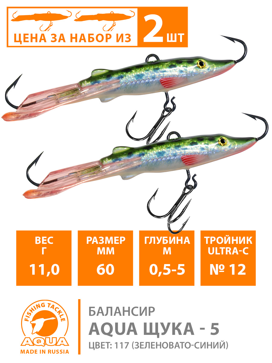 Балансир AQUA ЩУКА-5 60mm, набор 2шт, цвет 117 (зеленовато-синий)