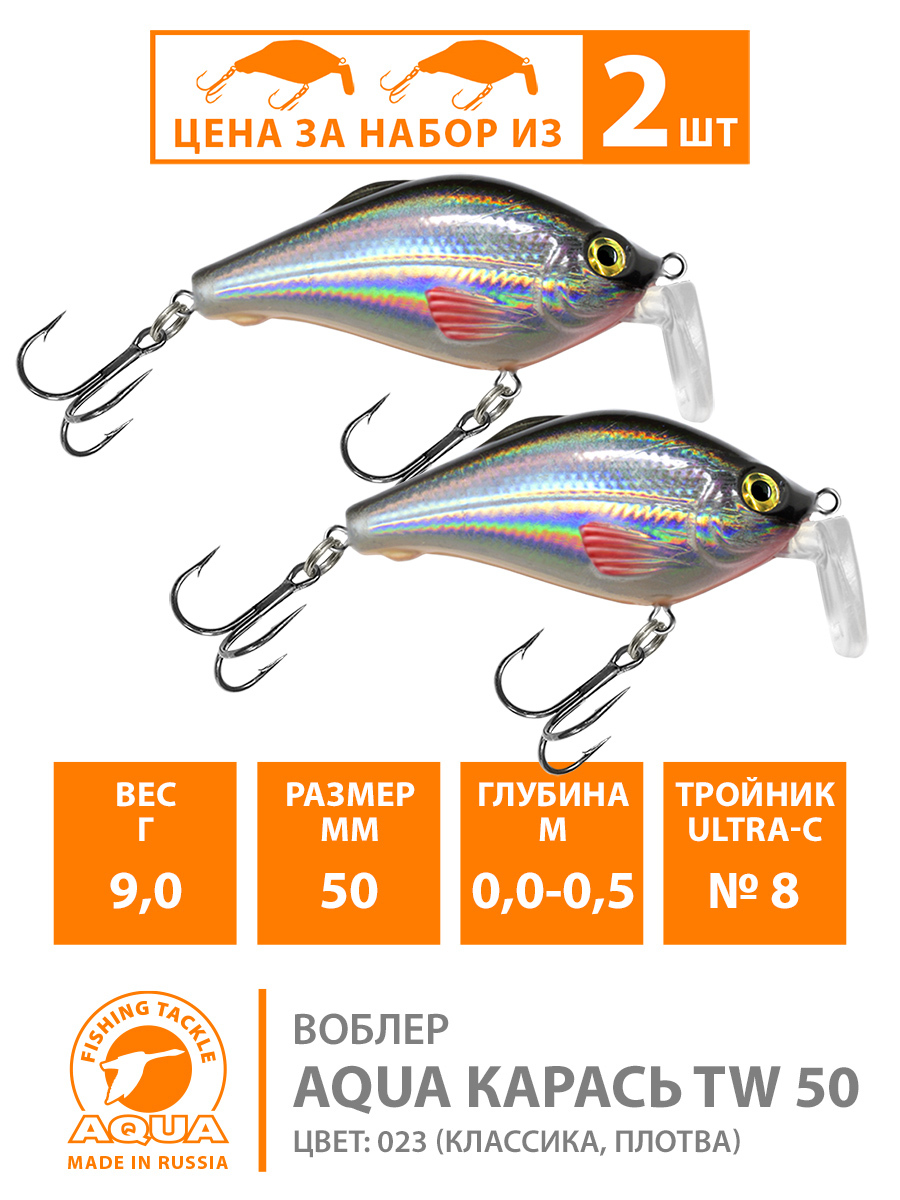 Воблер для рыбалки AQUA КАРАСЬ TW 50mm, вес - 9,0g, цвет 023 (классика, плотва) (набор 2 шт)
