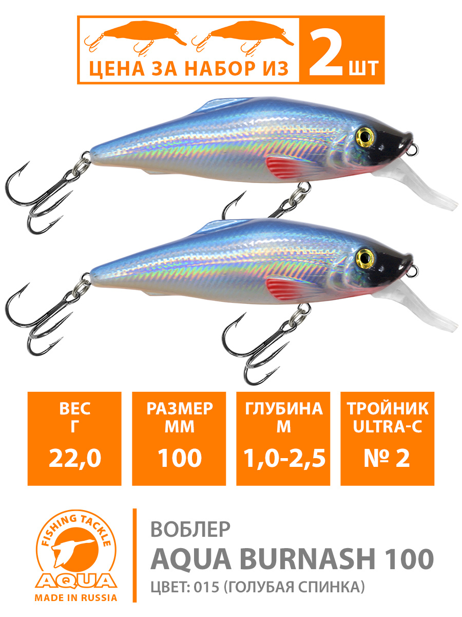 Воблер AQUA BURNASH 100mm, вес - 22,0g, цвет 023 (классика, плотва) (набор 2 шт)