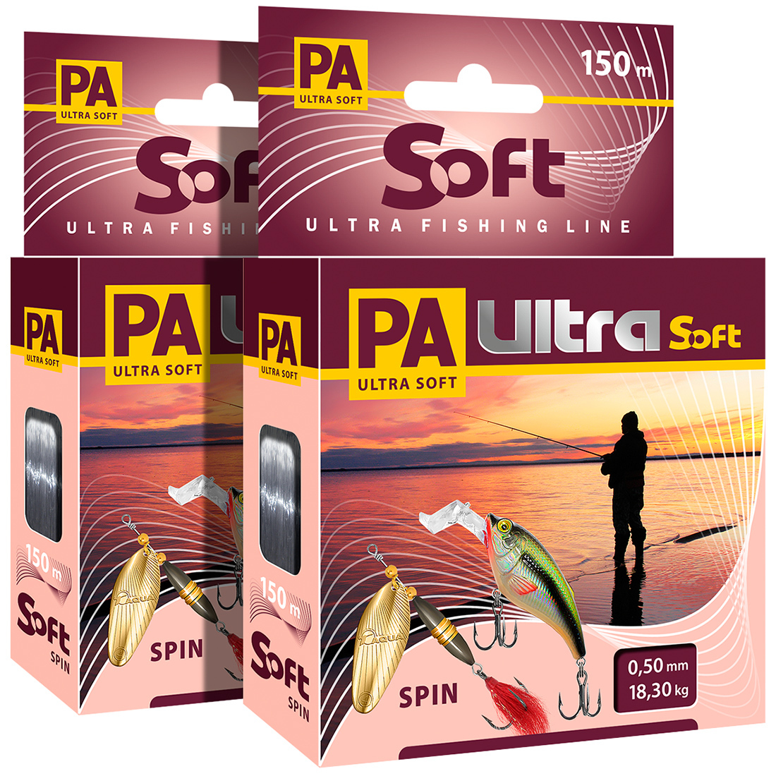 Монофильная леска для рыбалки Aqua PA ULTRA SOFT SPIN, набор, 2 шт. по 150 м; 0.5 мм