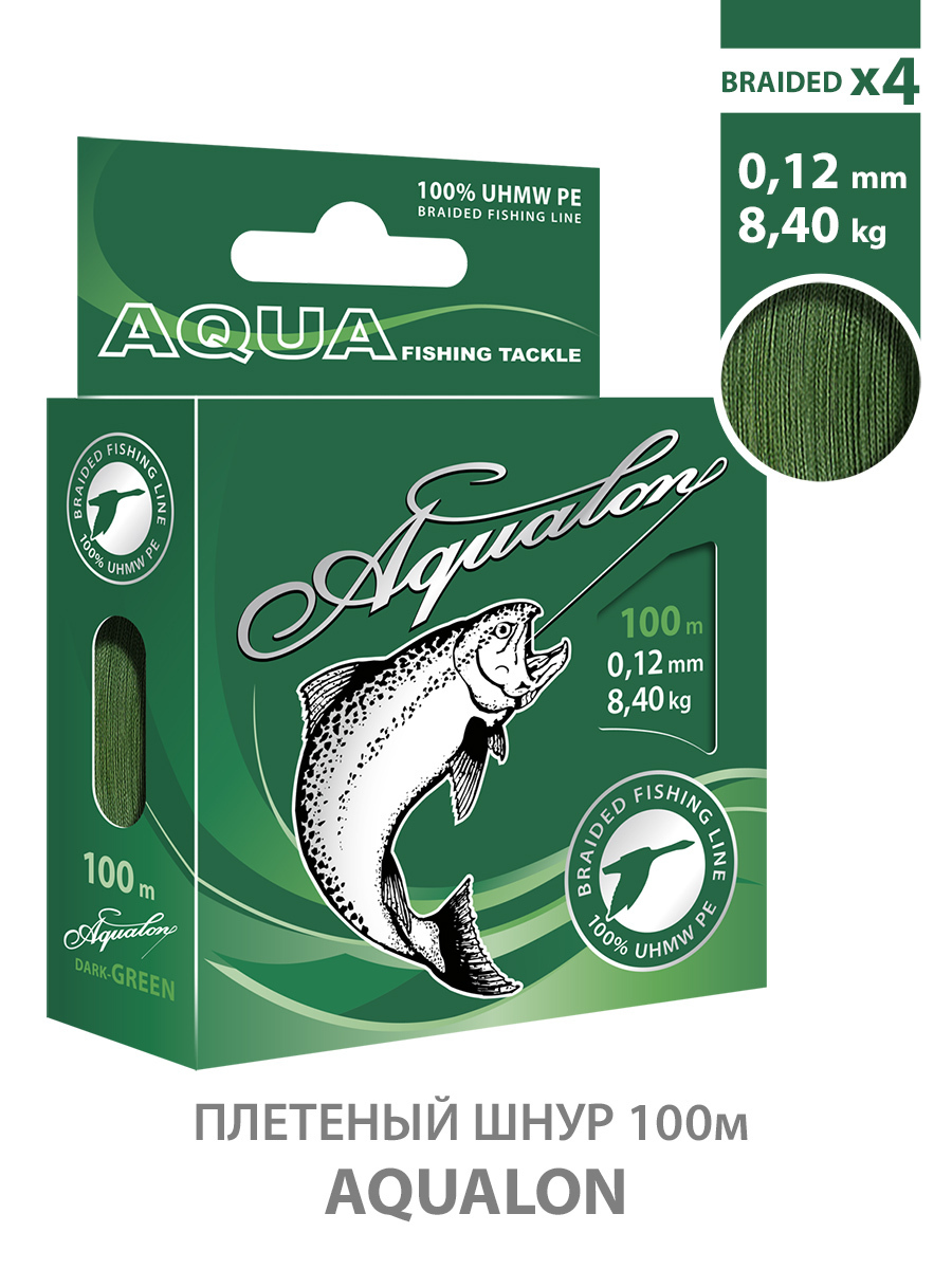 Плетеный шнур для рыбалки AQUA Aqualon Dark-Green 0,12mm 100m, цвет - темно-зеленый, test - 8,40kg