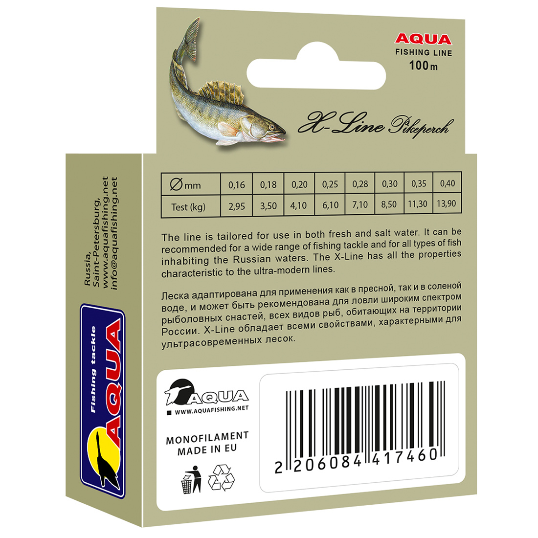 Монофильная леска для рыбалки Aqua X-Line Pikeperch (Судак), набор, 2 шт. по 100 м; 0.35 мм