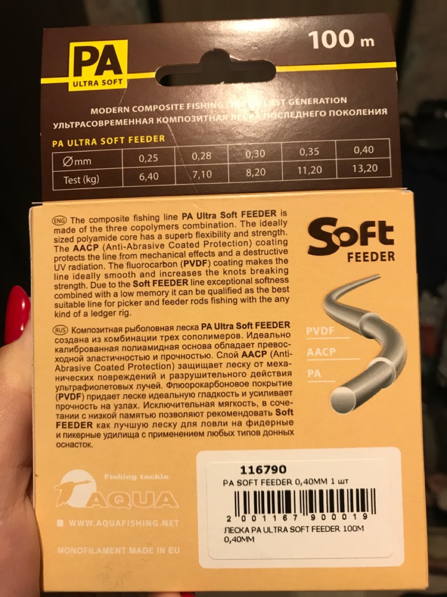 Монофильная леска для рыбалки Aqua PA ULTRA SOFT FEEDER, набор, 2 шт. по 100 м; 0.35 мм