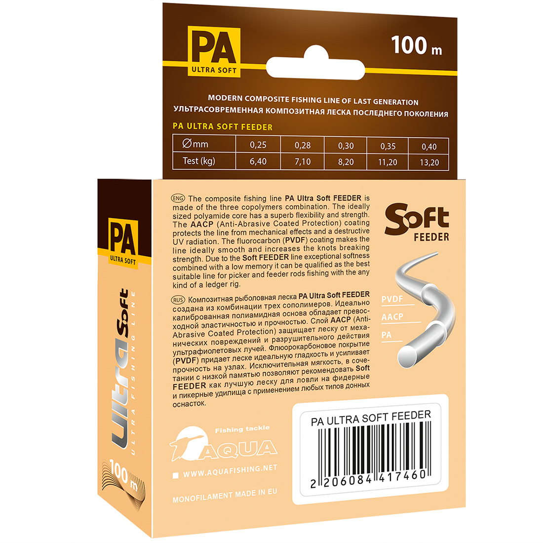 Монофильная леска для рыбалки Aqua PA ULTRA SOFT FEEDER, набор, 2 шт. по 100 м; 0.25 мм