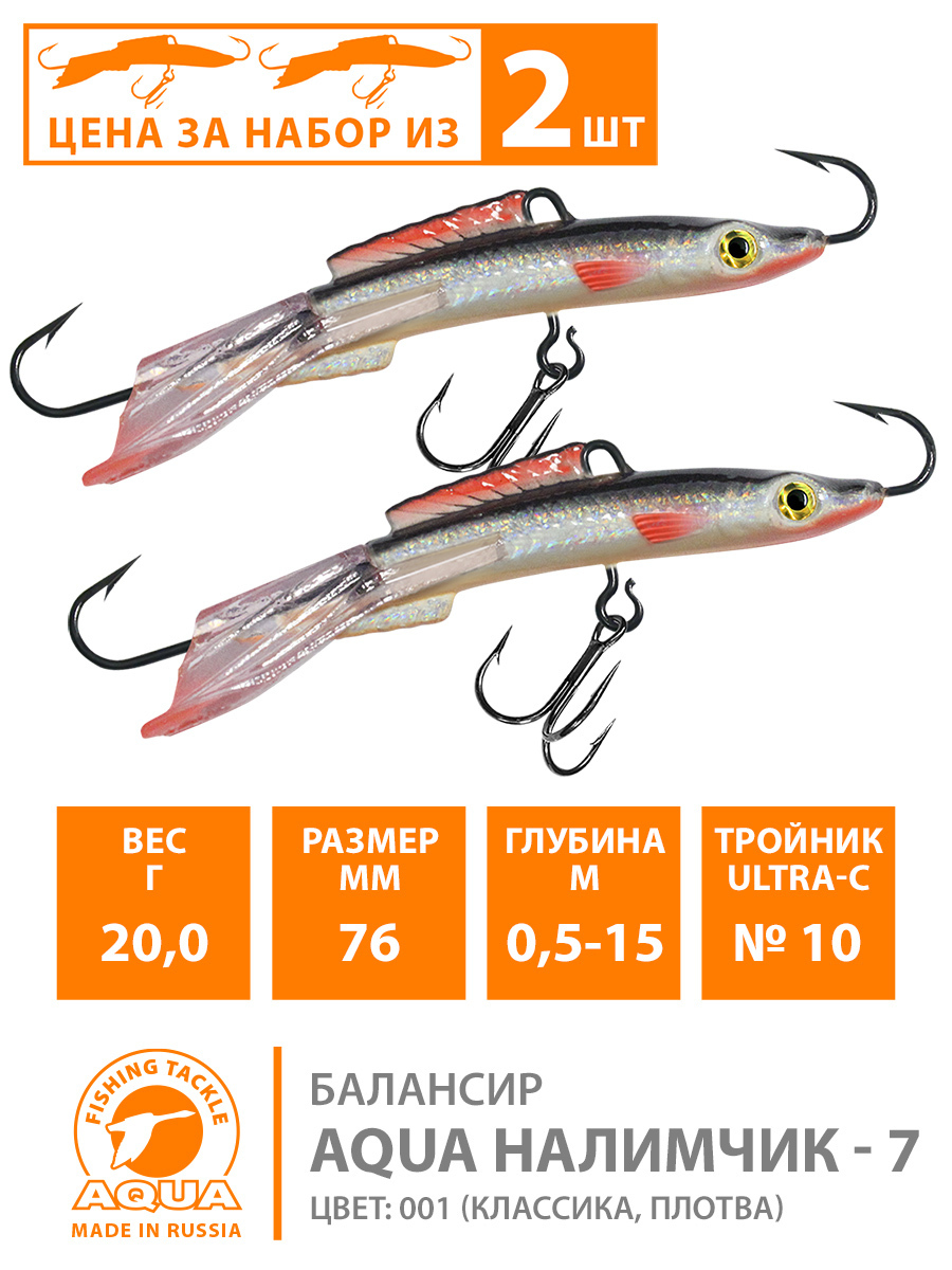 Балансир AQUA Шпрот-7 76mm, набор 2шт, цвет 015 (голубая спинка)