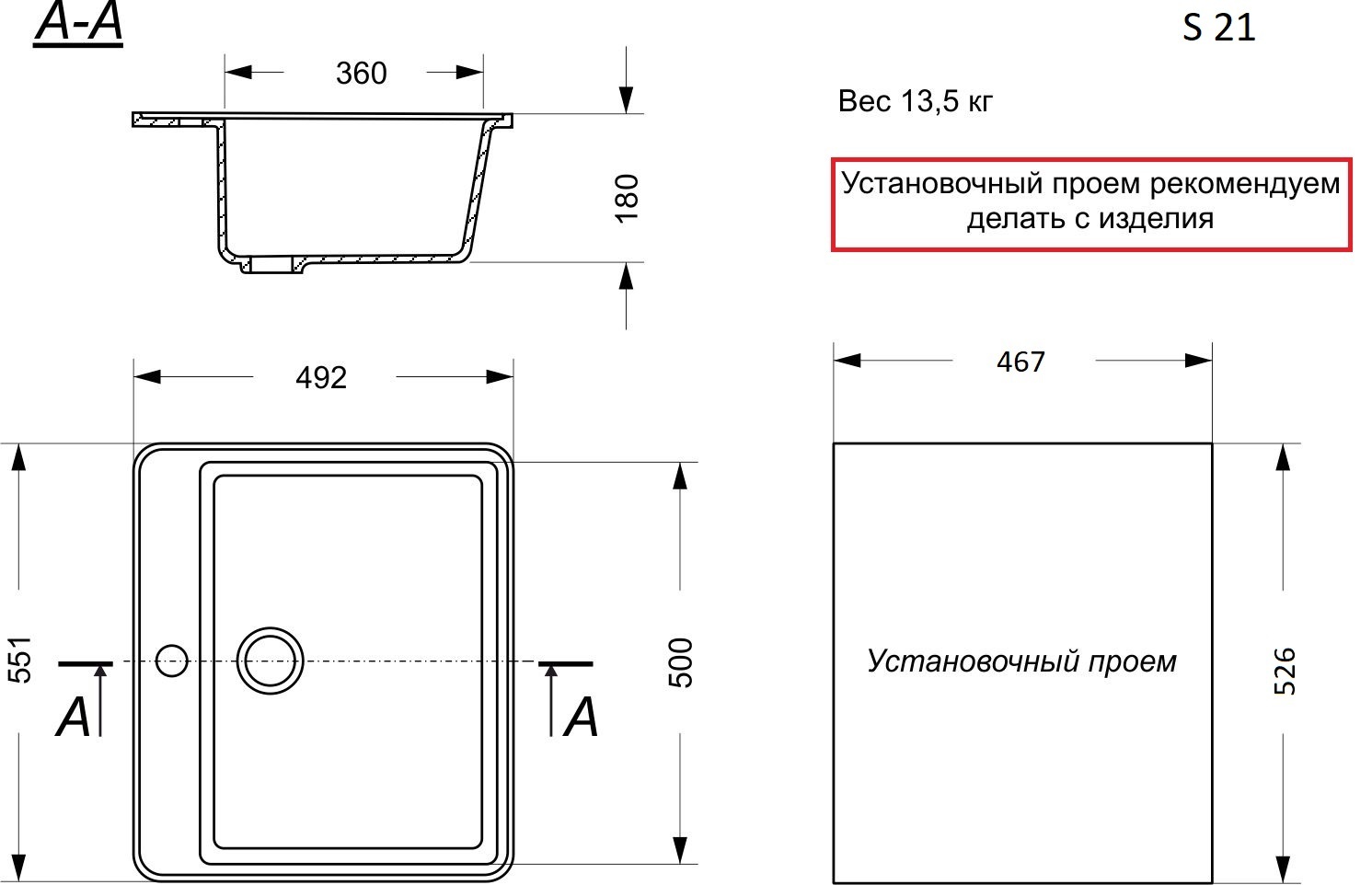 Мойка кухонная AquaLoft / Мойка каменная AquaLoft ALT 48 черный