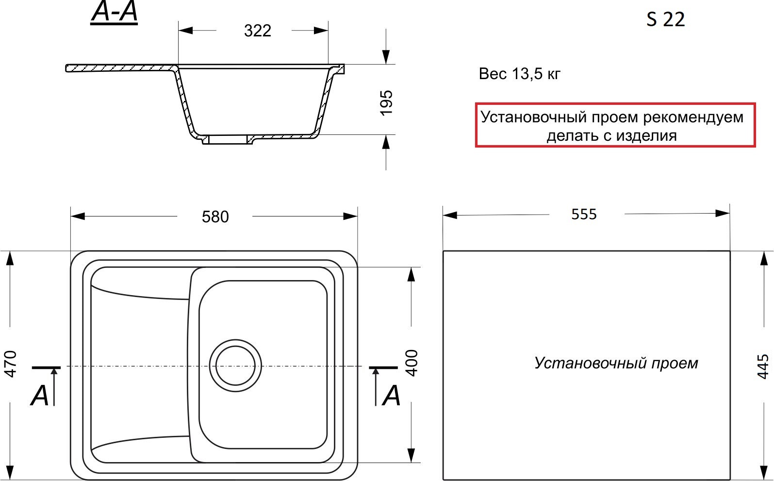 Мойка кухонная из искусственного камня AquaLoft S 22 темно-серый