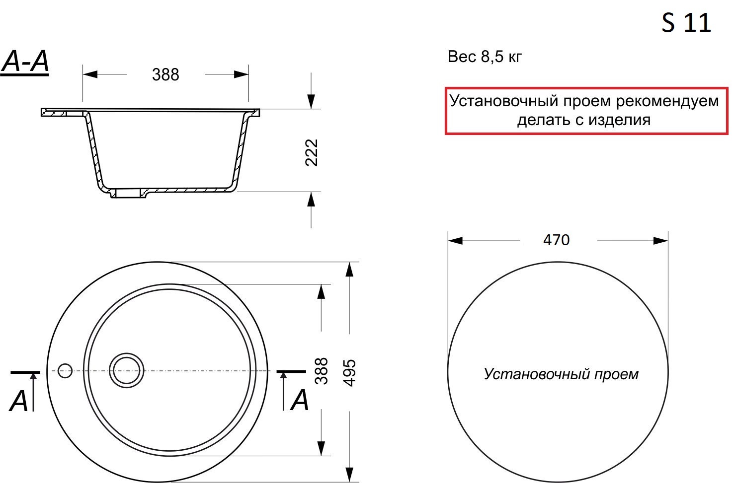 Мойка кухонная из искусственного камня AquaLoft S 11 темно-серый