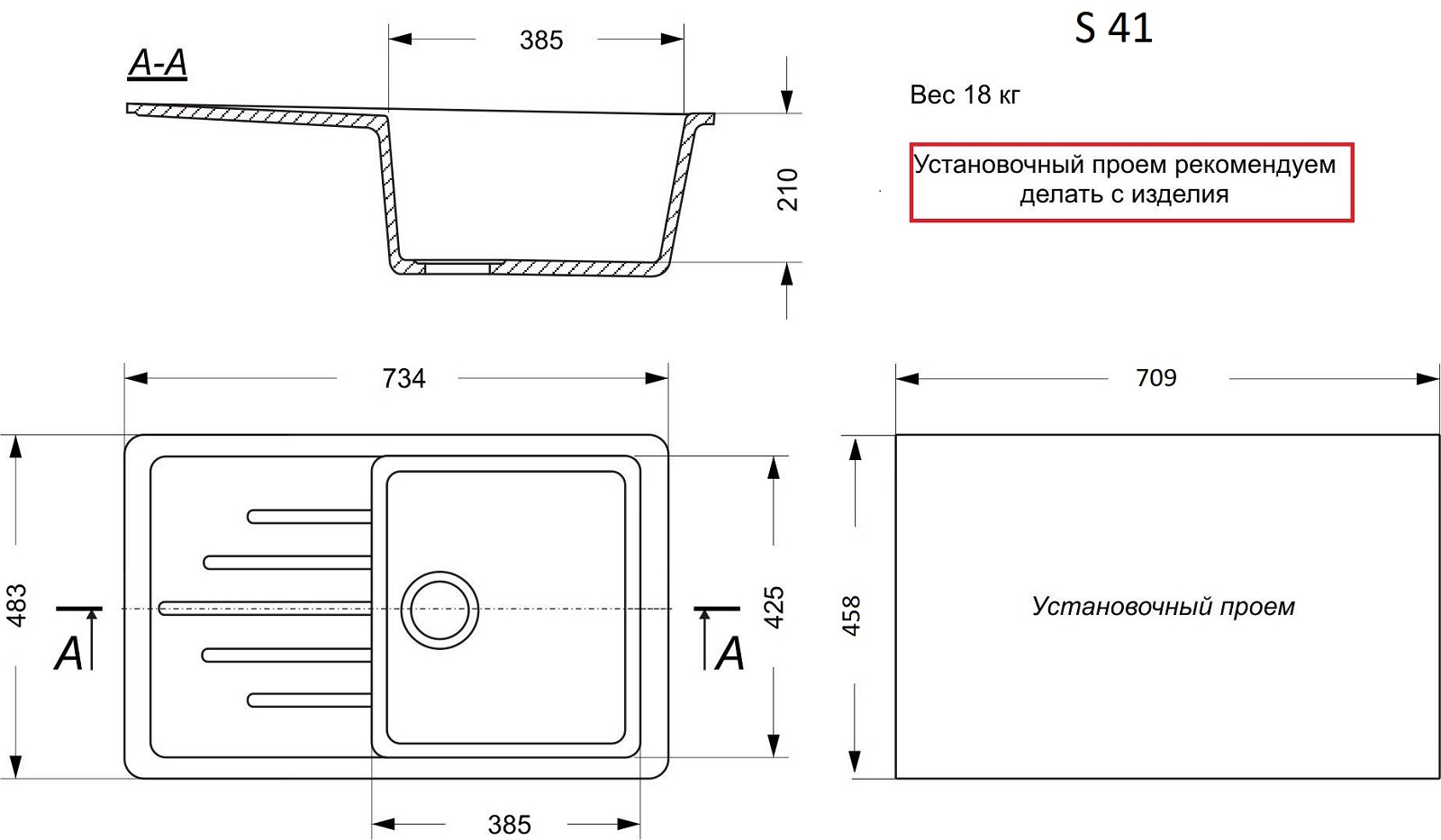 Мойка кухонная из искусственного камня AquaLoft S 41 черный