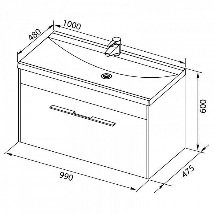 Тумба с раковиной Aquanet, 99.6х47.4х65 см, tumbaAquanet050